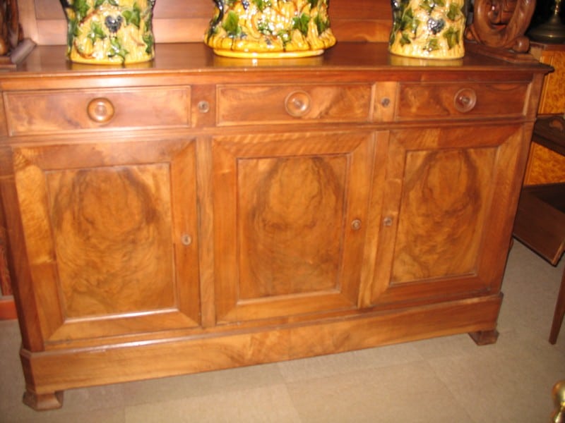 Très beau ‘Saint-Hubert’ 3 portes, 3 tiroirs en Noyer. Décor de corne d’abondance en partie haute. Seconde moitié du XIXe (1880)