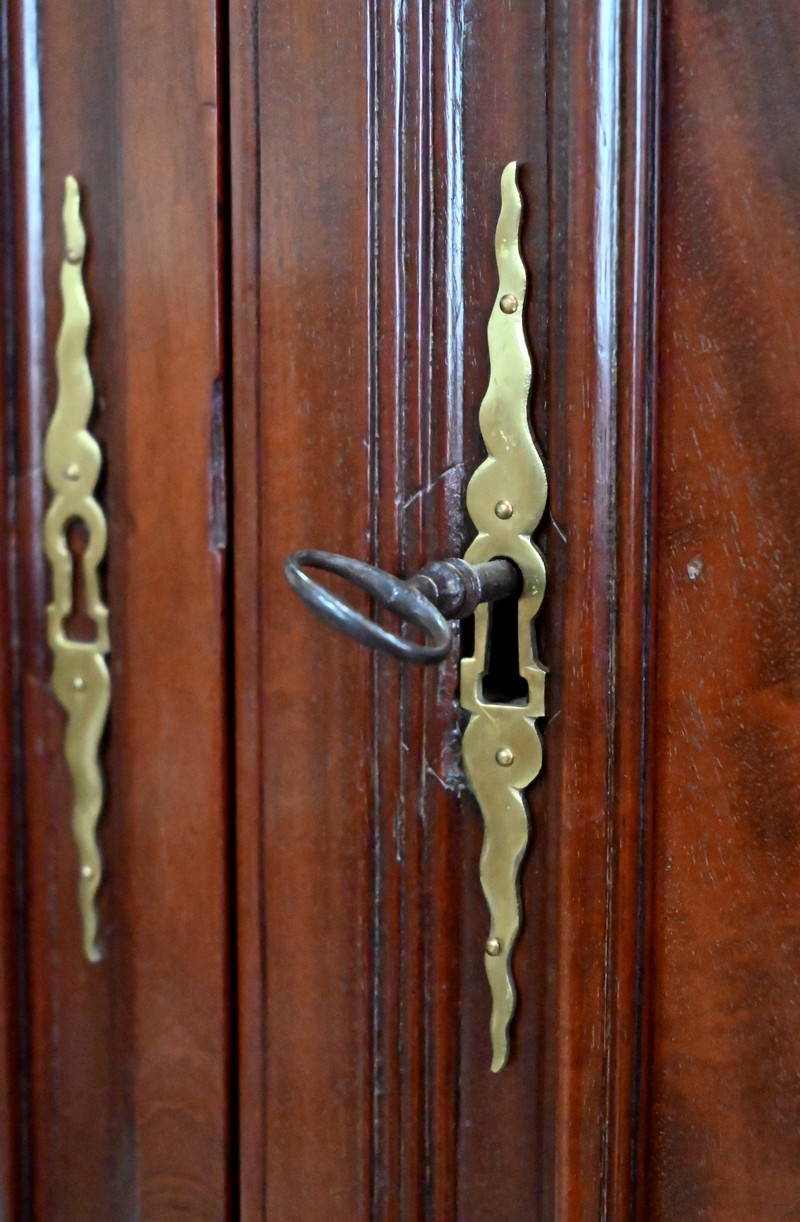 Exceptionnel par son authenticité, son dimensionnel (à savoir sa hauteur de 2,35 m pour ce type de meuble) et ses fonctions diverses, ce buffet commode scriban de port nantais n’a pas souffert des affres du temps ces derniers deux cents ans. Il plaira également par sa rareté et sa grande qualité de fabrication.