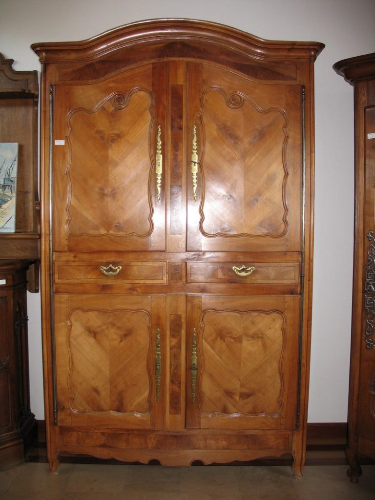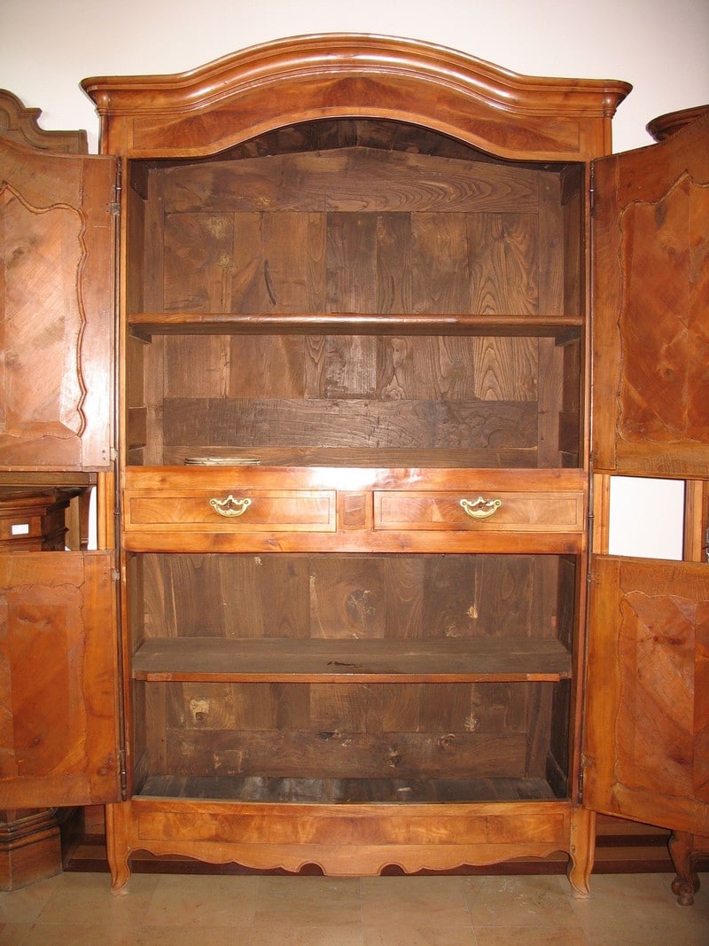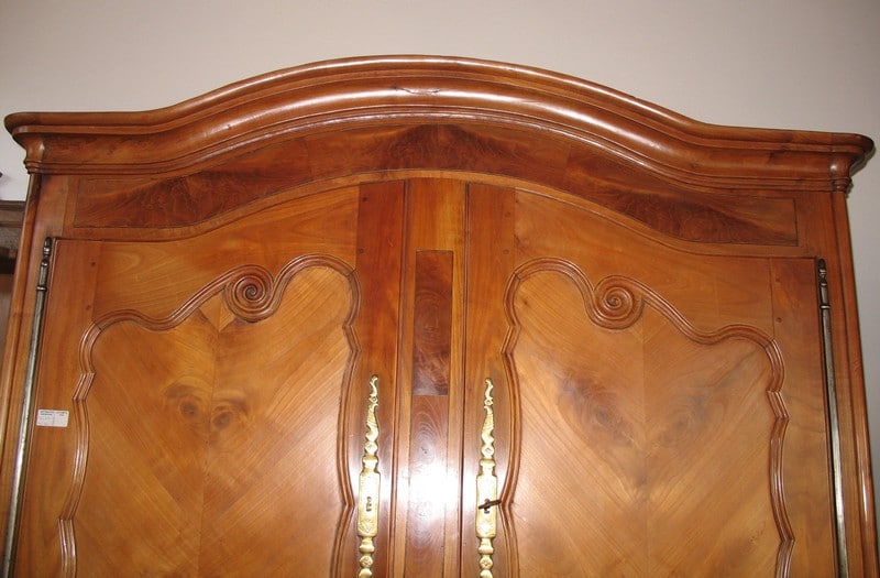 Meuble ‘QUATRE VOLETS’ Louis XV en merisier, à portes médaillons et corniche en chapeau de gendarme. Région de Rennes (Ile et Vilaine) Milieux XIXe (1850).