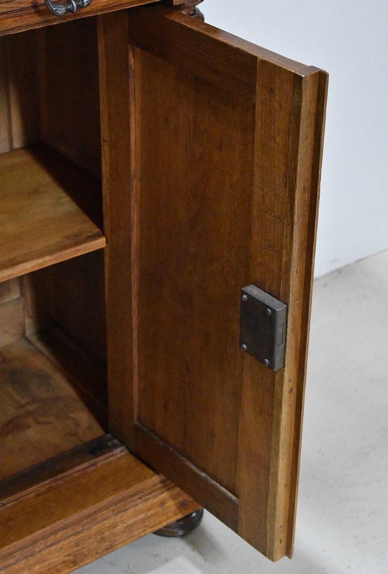 Petit buffet deux-corps dans le goût Gothique en chêne.