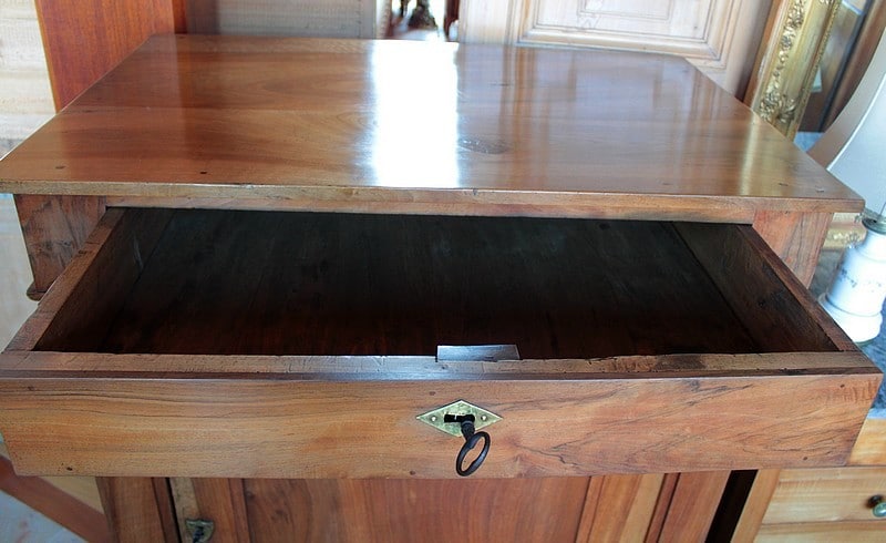 Depuis 50 ans, chaque pièce de mobilier est minutieusement restaurée avec passion dans notre atelier d’ébénisterie.