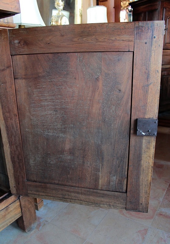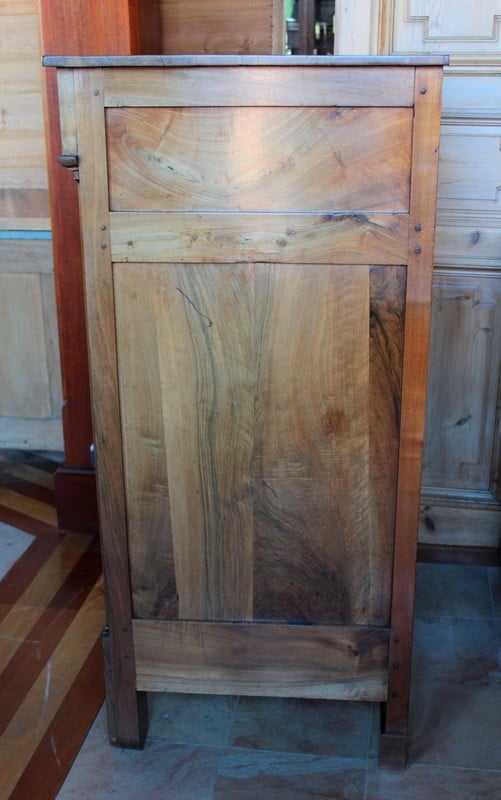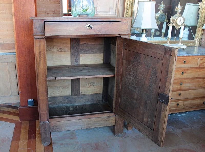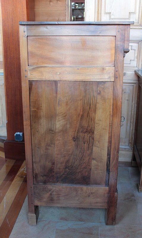 Bahut de propriété Directoire à hauteur d’appui en noyer massif. Il ouvre par 1 tiroir en partie haute et 1 porte. L’intérieur est garni d’une étagère.