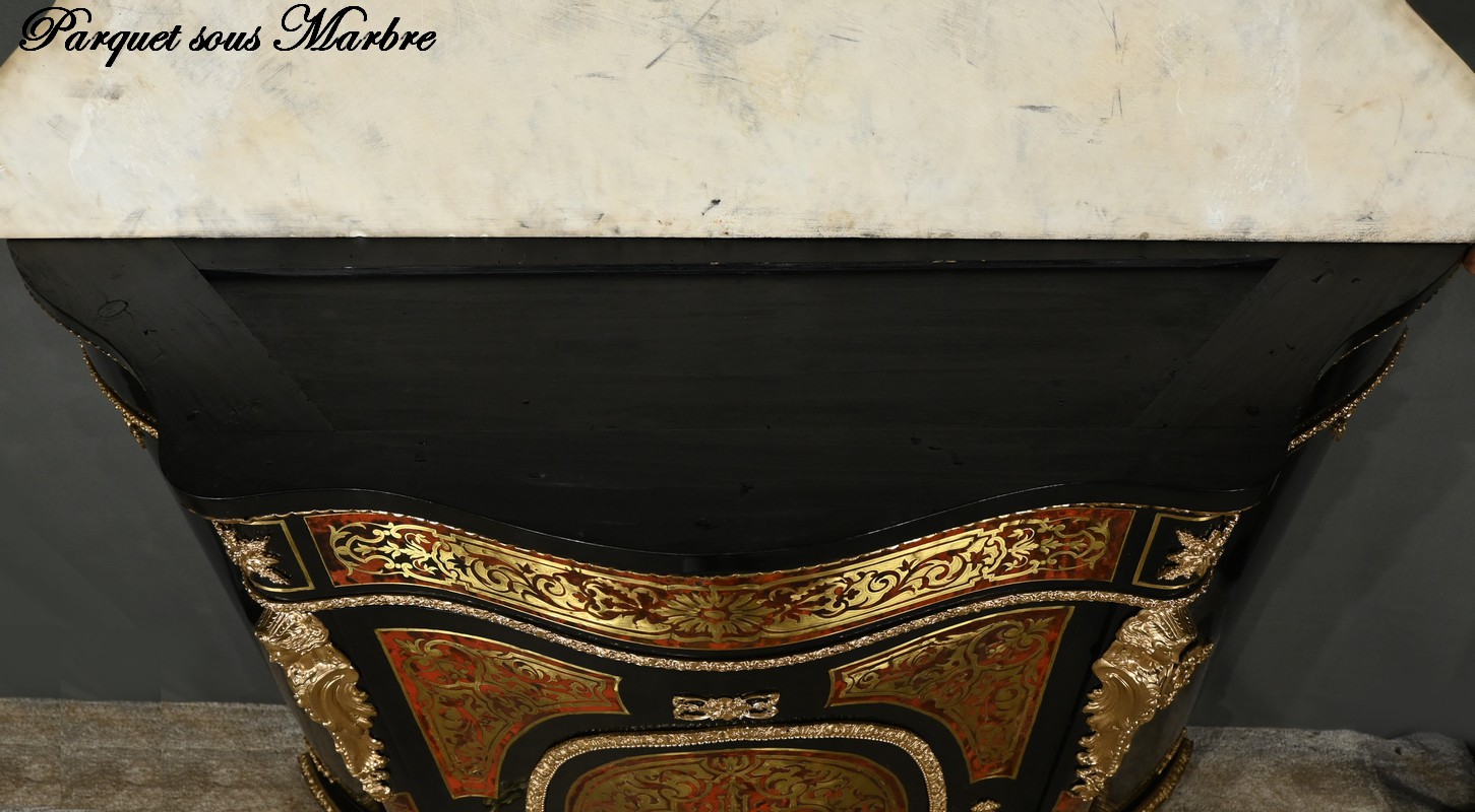 Ce buffet est non seulement un témoignage de l’opulence et du goût raffiné de l’époque Napoléon III, mais aussi une pièce maîtresse qui saura sublimer tout intérieur classique ou contemporain.