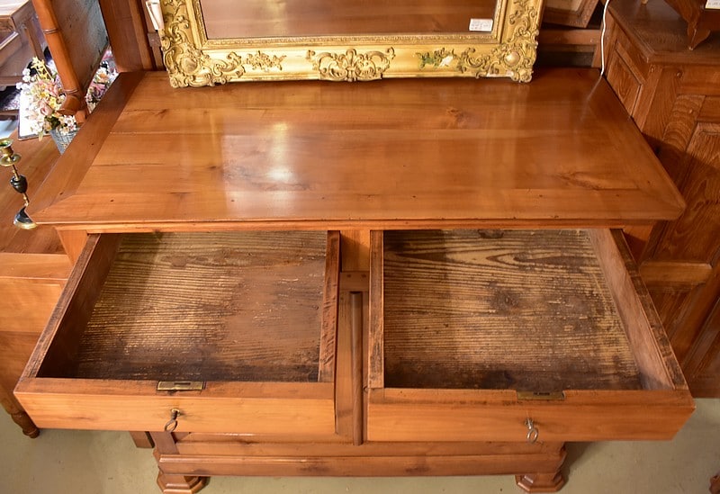 Depuis 50 ans, chaque pièce de mobilier est minutieusement restaurée avec passion dans notre atelier d’ébénisterie.