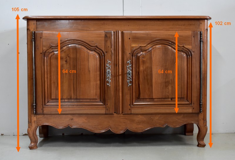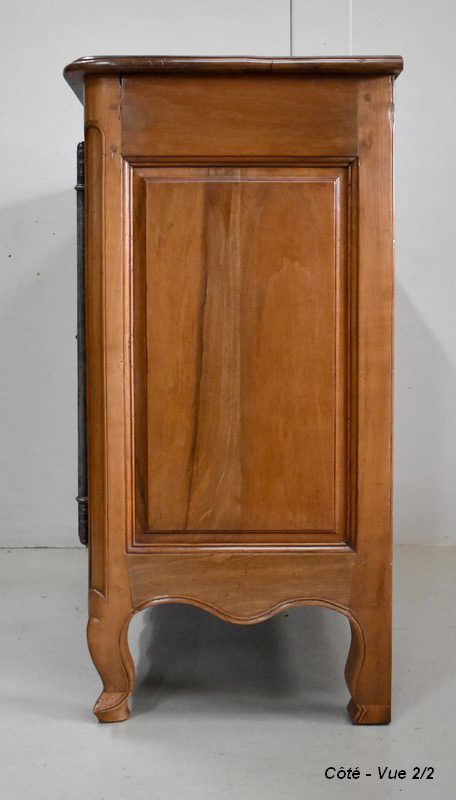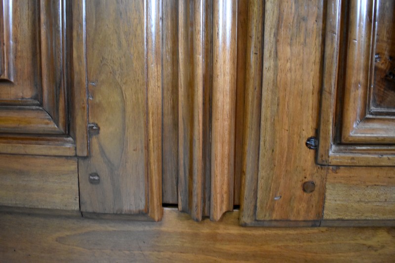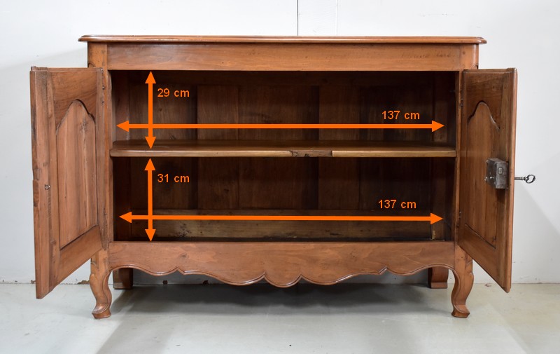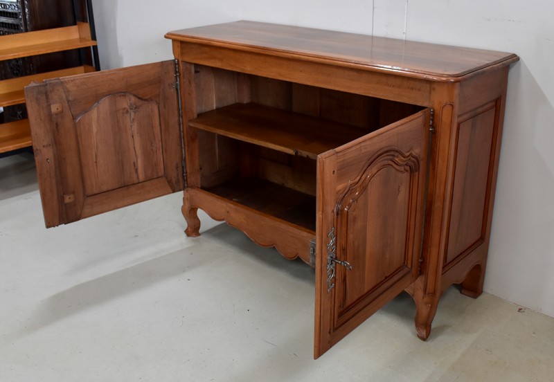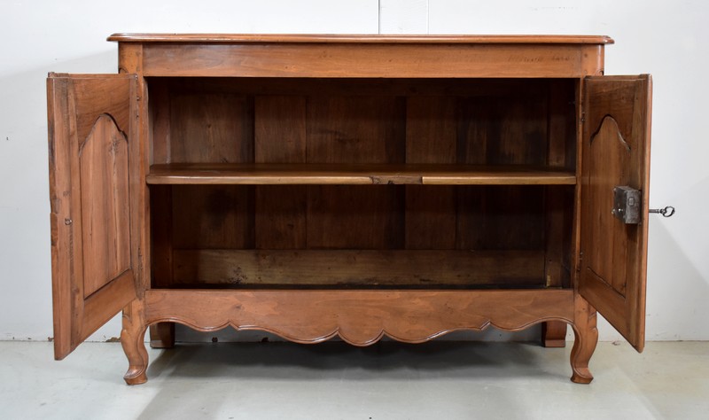 Buffet de Boiserie dans le goût Transition, en Noyer Massif, à l’exception des deux pieds arrière qui sont en Merisier.