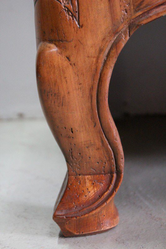 Le Piètement confère à l’ensemble une touche Gracieuse, par la présence de la Traverse à découpe, et celle de Montants en Quart de rond terminés par un Délicat Pied de Biche.