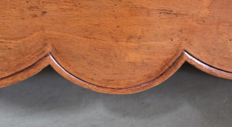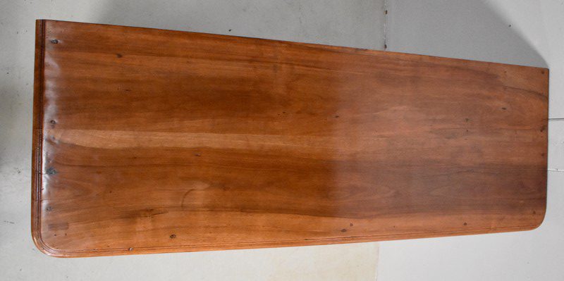 Deux planches composent son Plateau, qui présente un Pourtour en Bec-de-corbin, avec une légère Moulure à Doucine.