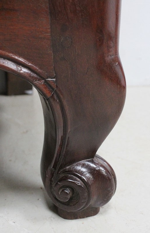 L’ensemble repose à l’avant sur deux larges pieds en Escargots, à l’arrière sur deux pieds quasiment droits.