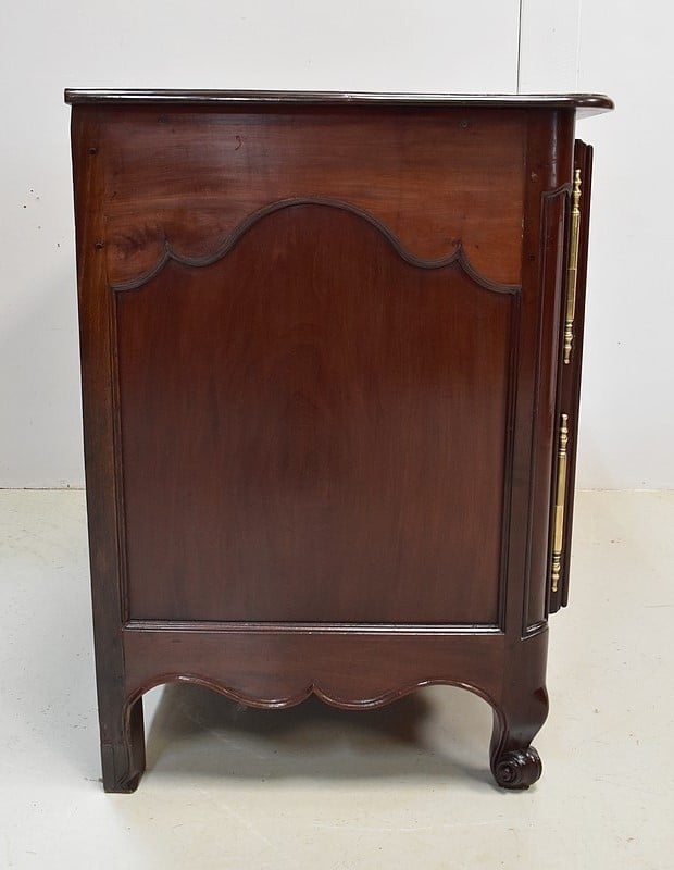 Ce Buffet Nantais a amplement prouvé sa Robustesse et sa Qualité, et il peut se vanter d’être en parfait état malgré ses 250 ans. Il conjugue, comme beaucoup de meubles de Port de son époque, les particularités de fabrication locales et les influences Parisiennes propres au XVIIIe siècle. Probablement conçu initialement pour une famille Bourgeoise ou un riche armateur, ce Buffet Régional attend désormais une nouvelle demeure dans laquelle il pourra apporter Cachet et Caractère.