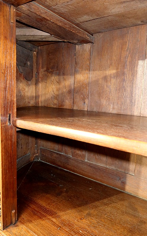 L’intérieur de ce meuble est équipé d’une étagère posée sur tasseaux fixes.