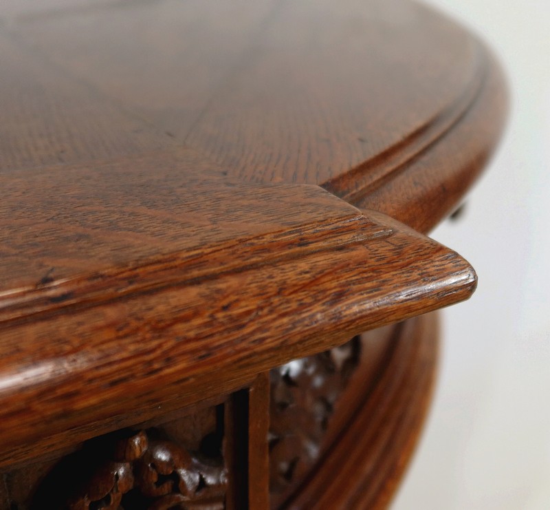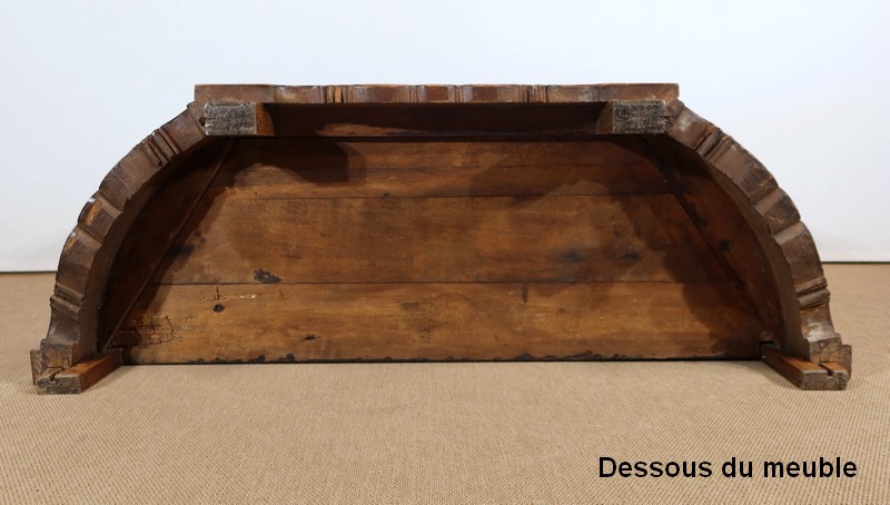 Le plateau de ce meuble est mouluré en bec de corbin avec gorge sur son pourtour.