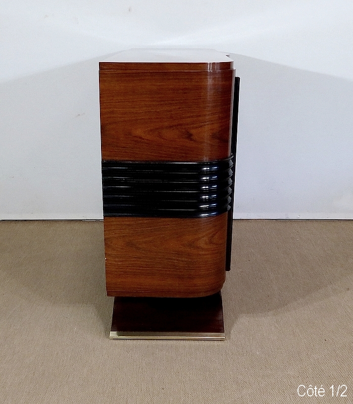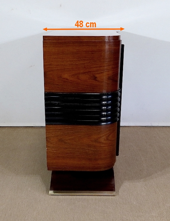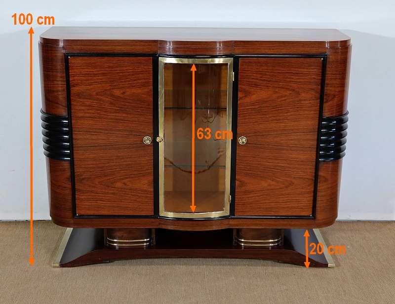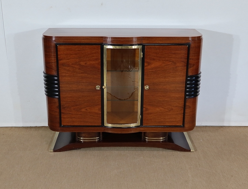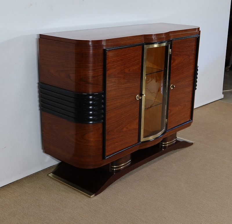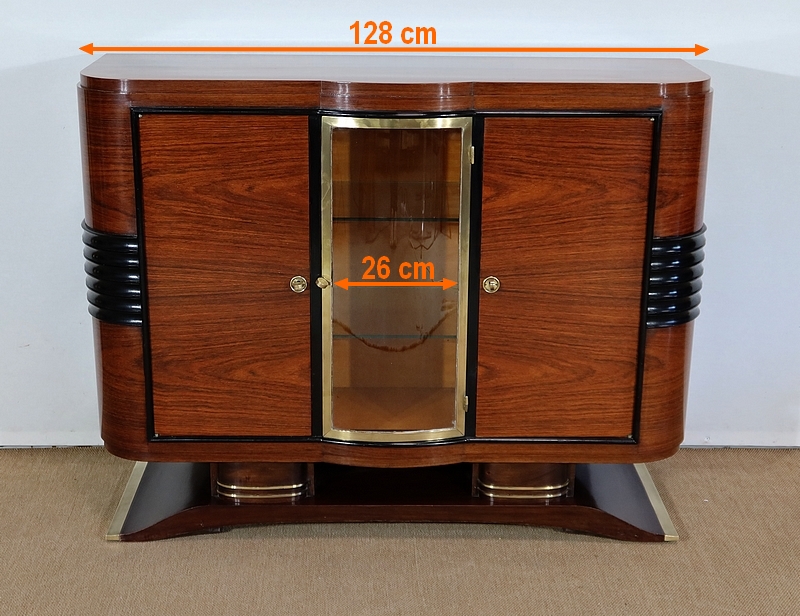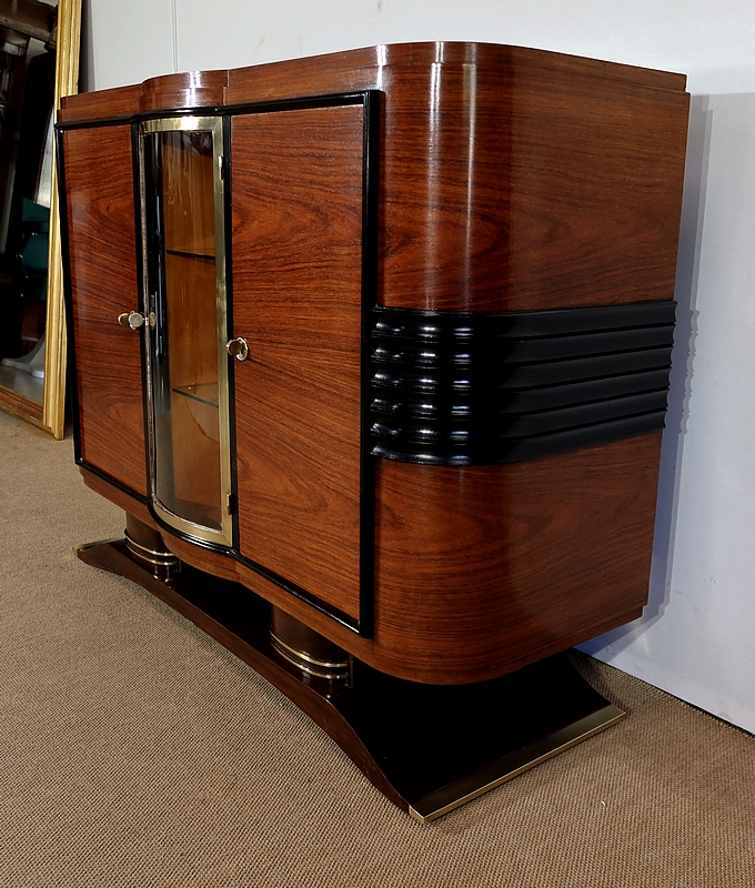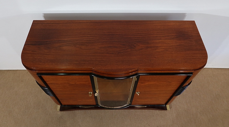 Superbe Buffet Vitrine des années 1930 en placage horizontal de Palissandre de Rio et Satinwood.