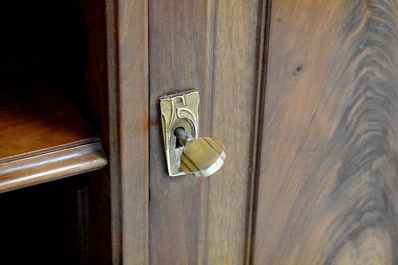 Il ouvre par une porte centrale sculptée et moulurée fermant à clef donnant accès à une étagère fixe à l’intérieur.