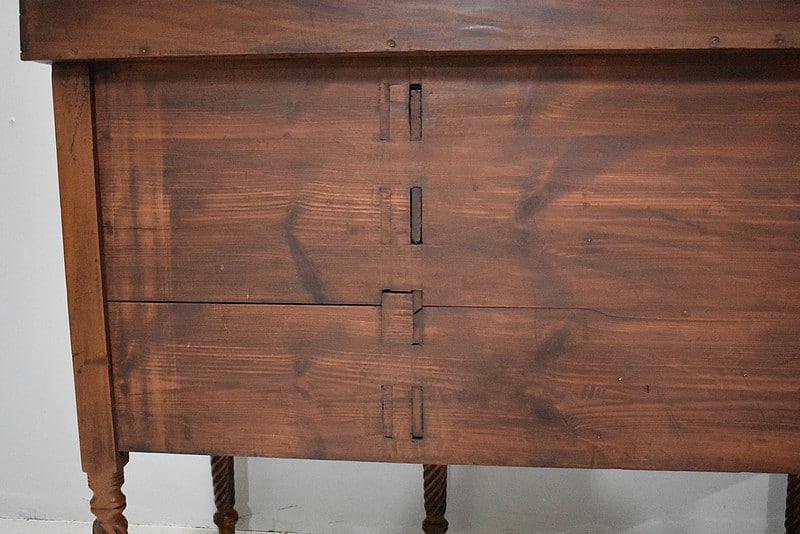 L’intérieur des tiroirs ainsi que l’arrière sont en sapin.