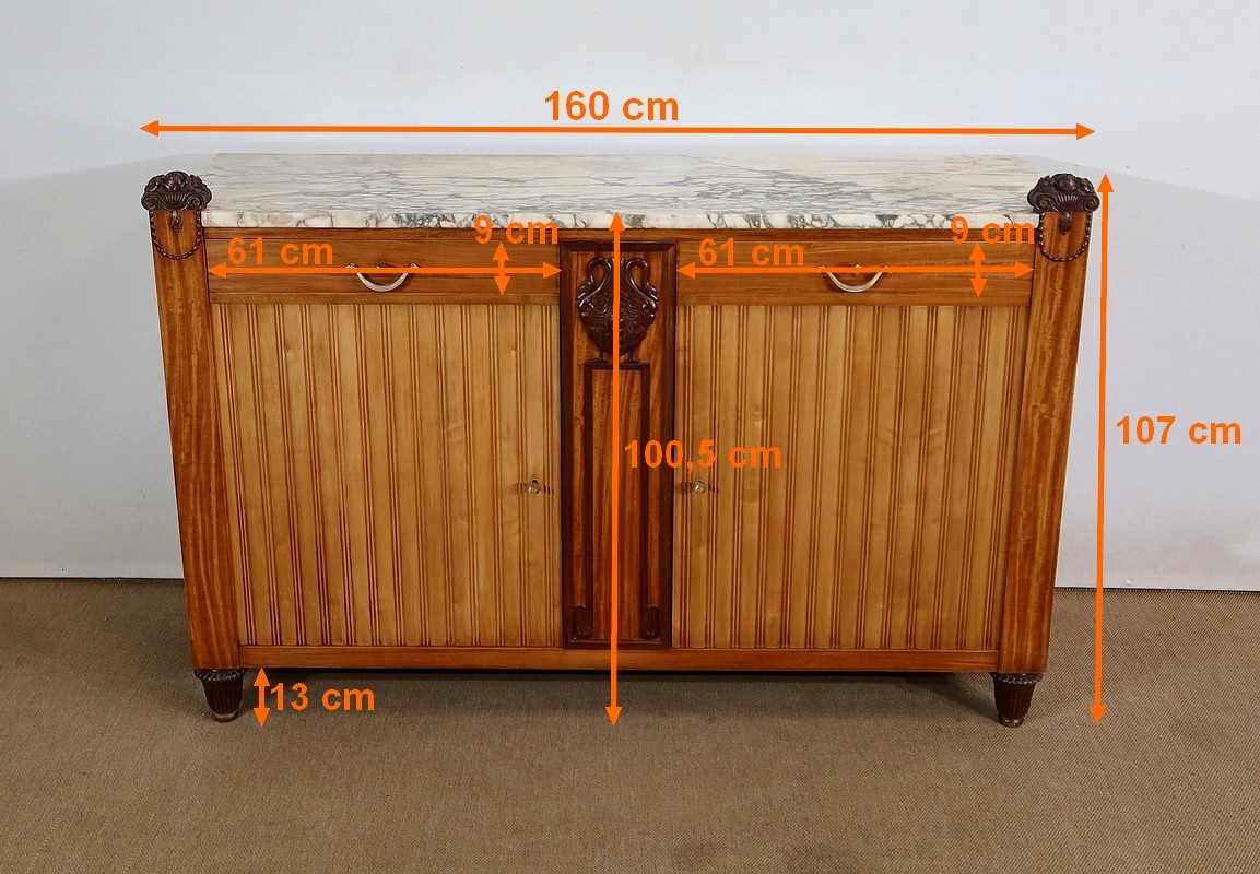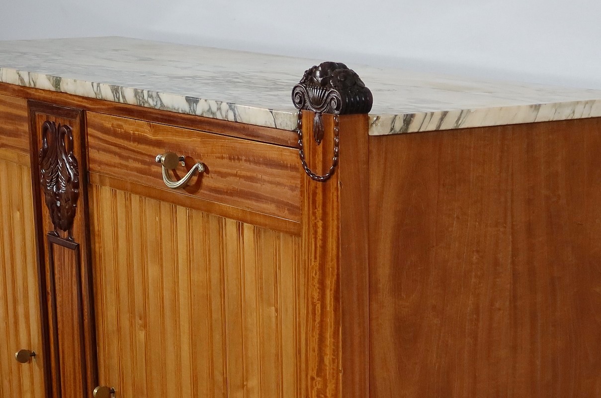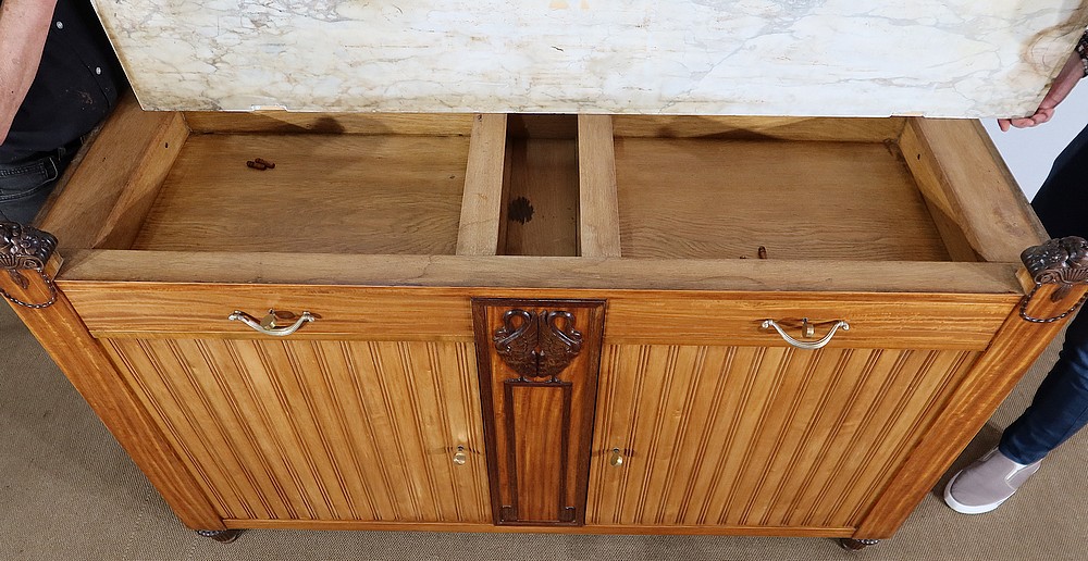Les côtés de ce buffet d’exception bénéficient de deux éléments symétriques déployés, illustrant également la qualité de réalisation de ce meuble.