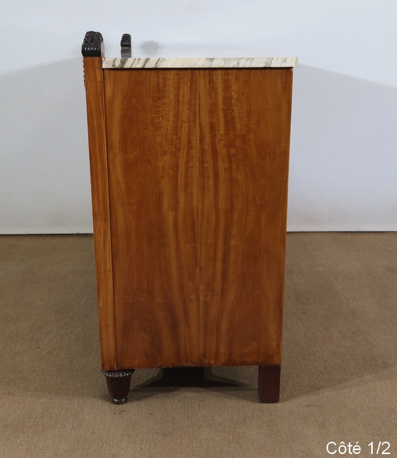 L’ensemble repose sur des pieds toupies à godrons à l’avant et rectangulaires à l’arrière.