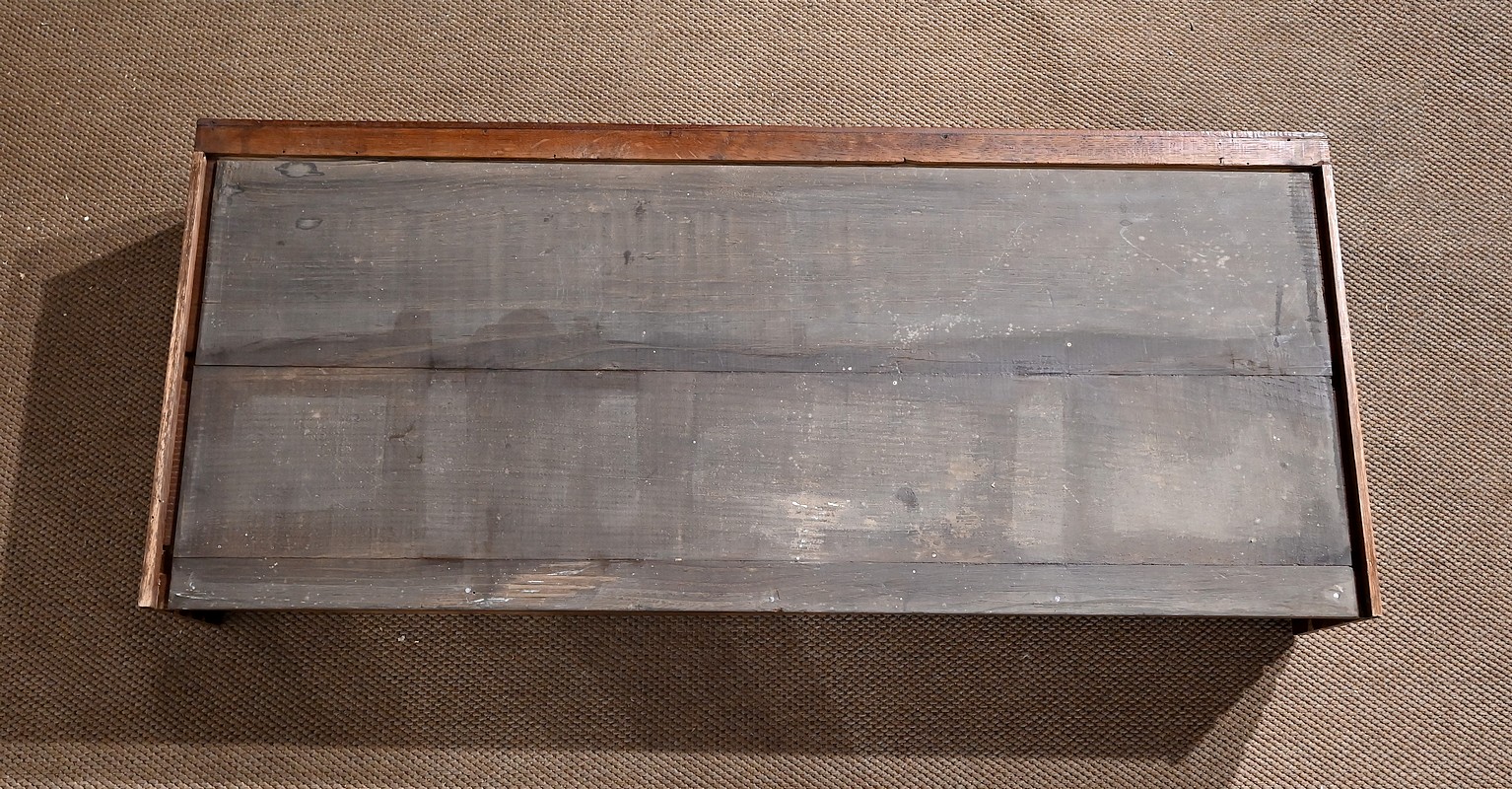 Les côtés et fonds de tiroirs, ainsi que l’arrière du meuble sont en chêne massif.