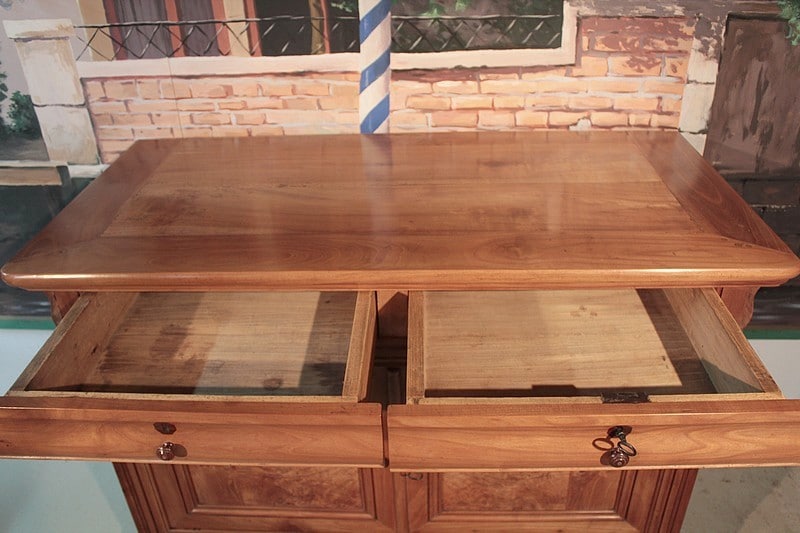 Depuis 50 ans, chaque pièce de mobilier est minutieusement restaurée avec passion dans notre atelier d’ébénisterie.