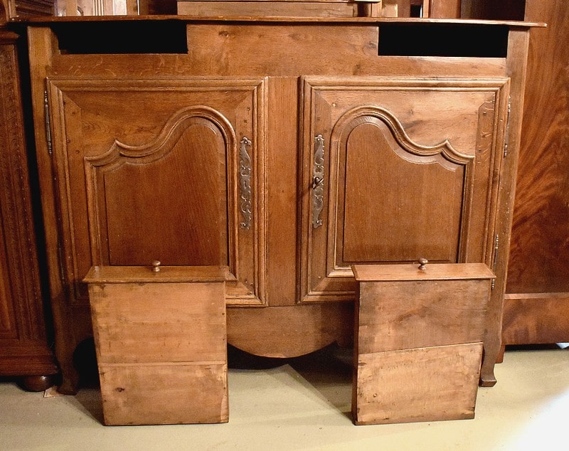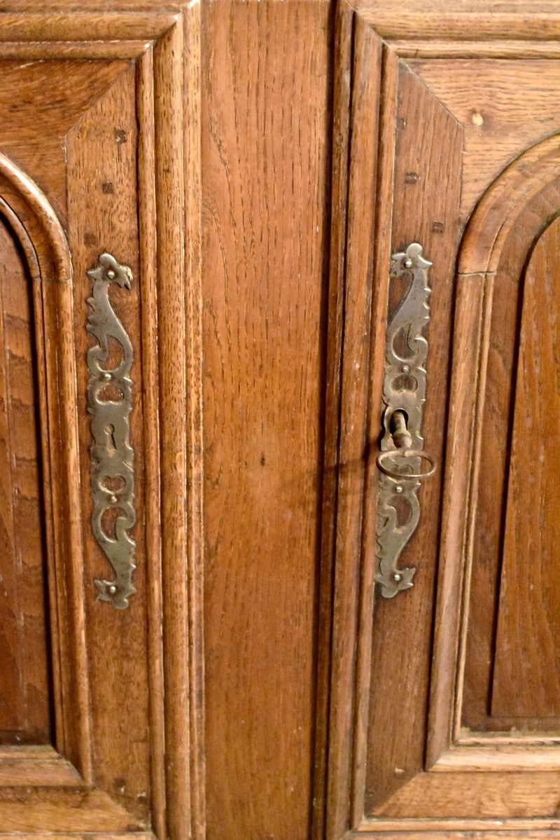 En dessous, il ouvre par 2 portes panneautées et moulurées fermant à clef avec sa serrure d’origine.