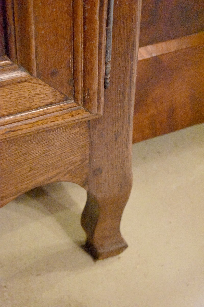 Les côtés et l’arrière sont également panneautés et il repose sur 2 pieds biches à l’avant et 2 pieds droits à l’arrière.