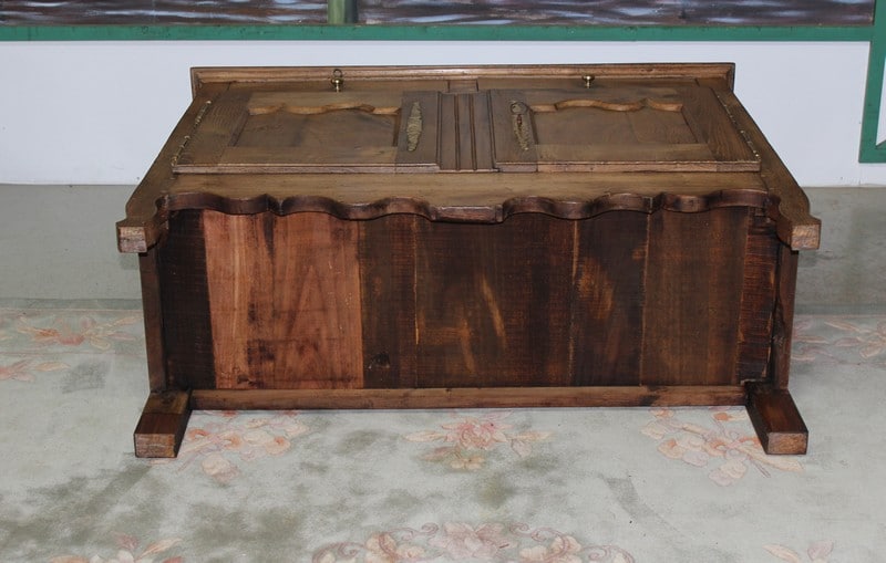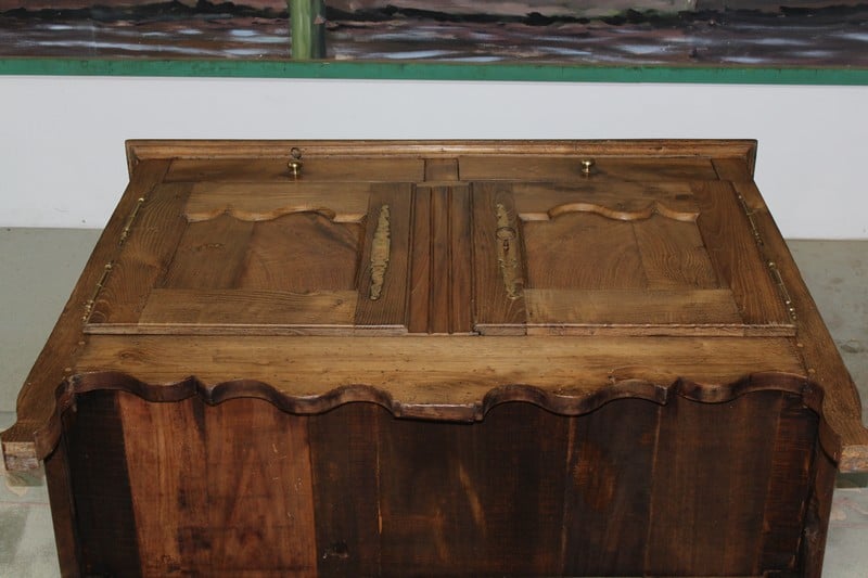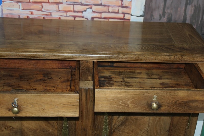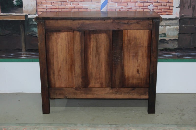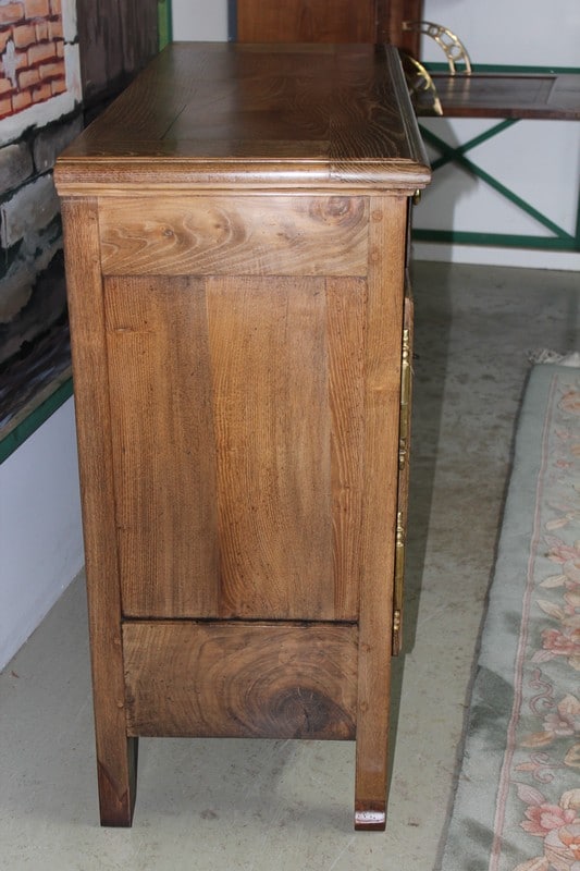 Peu profond, il ouvre par 2 portes et 2 tiroirs. Ses fiches et entrées de serrure sont en cuivre. Époque : seconde moitié du XIXe.
