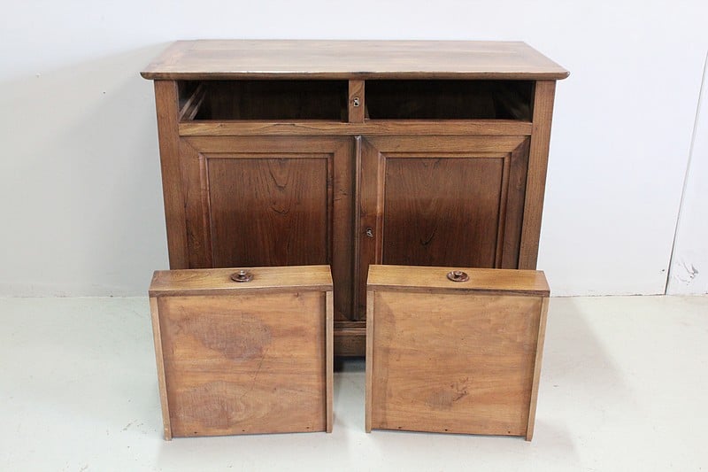 Il ouvre en dessous par 2 portes panneautées et moulurées fermant également à clef.