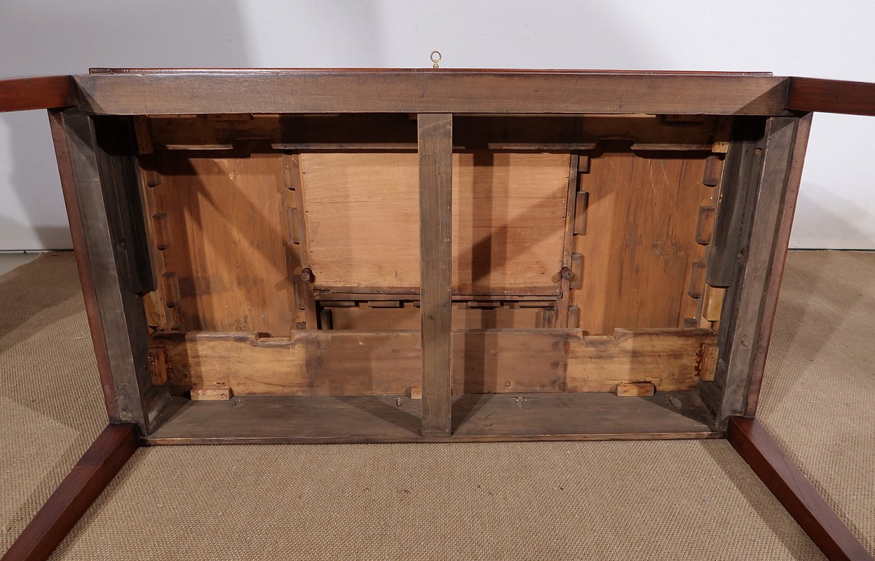 Le dessus, également en acajou massif, possède une moulure en son pourtour.