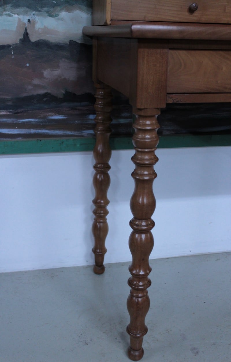 Il repose sur 4 pieds tournés. Le dessus est recouvert d’un cuir marron qui a été changé.