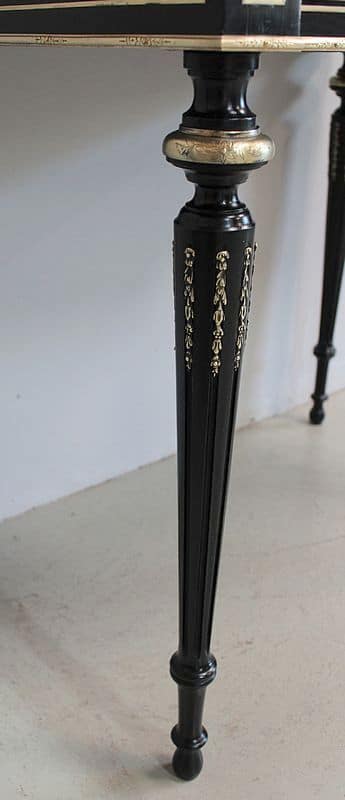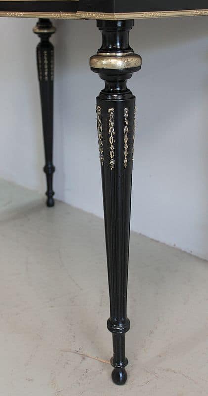 Il repose sur 4 pieds fuselés à cannelures rudentées en partie haute et bagués de bronze ciselé.