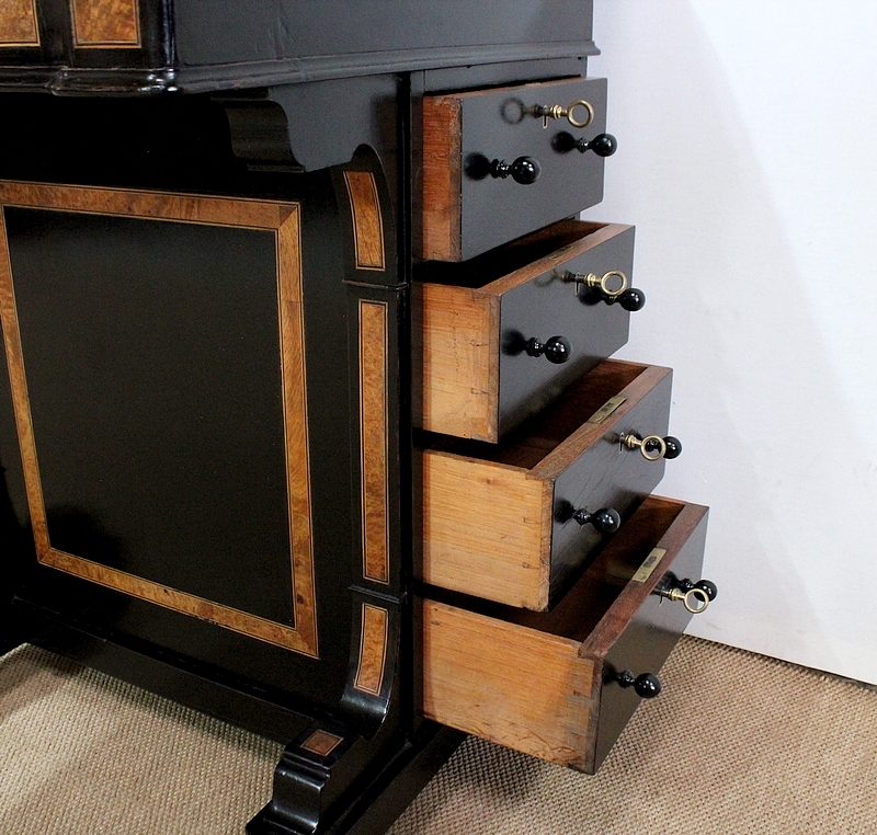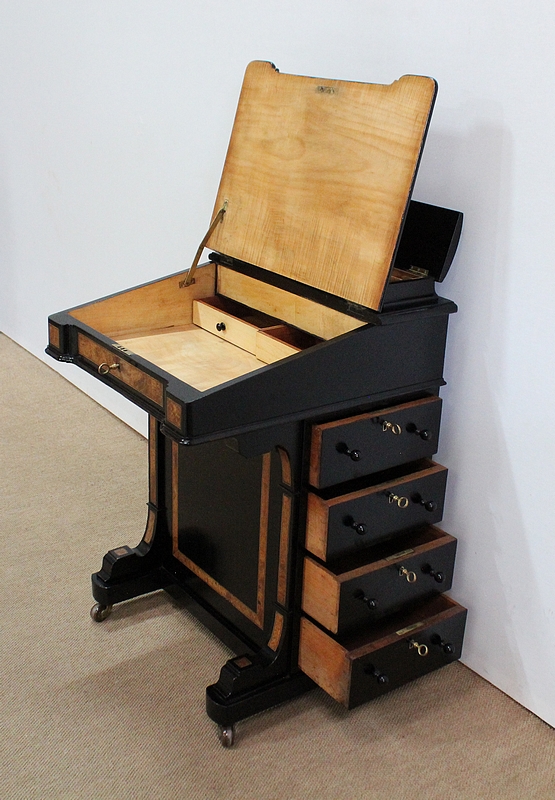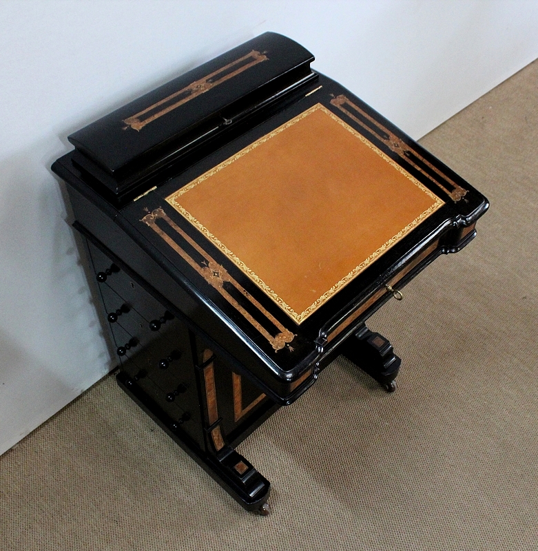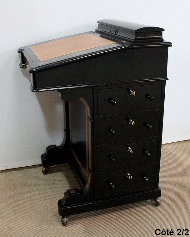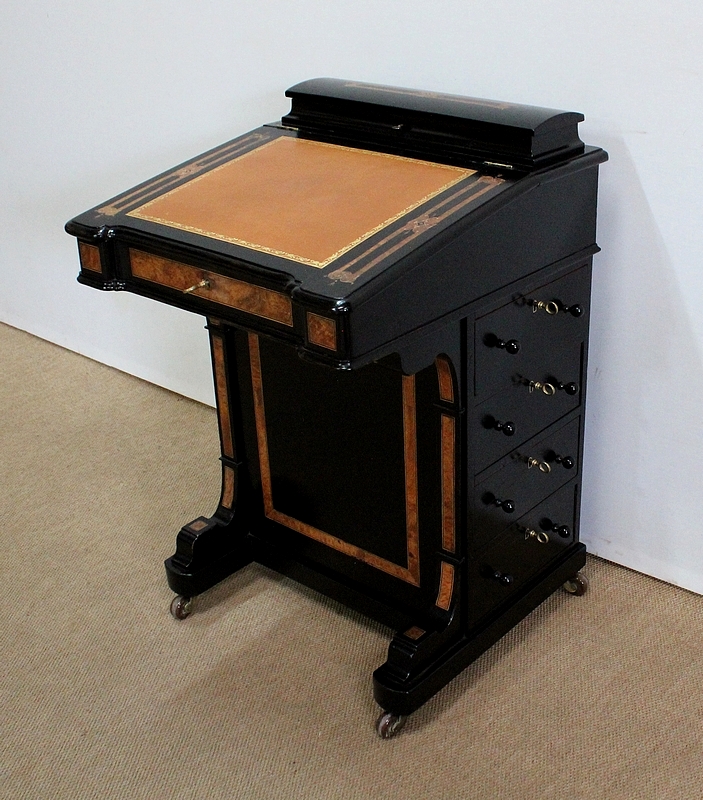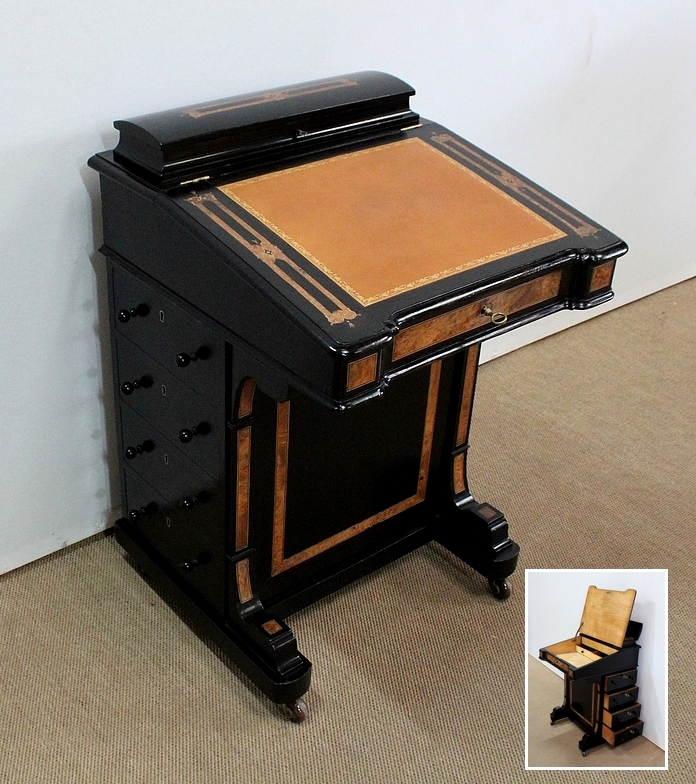 Bureau Davenport en Bois Noirci et Loupe de Thuya, Angleterre – Milieu XIXe