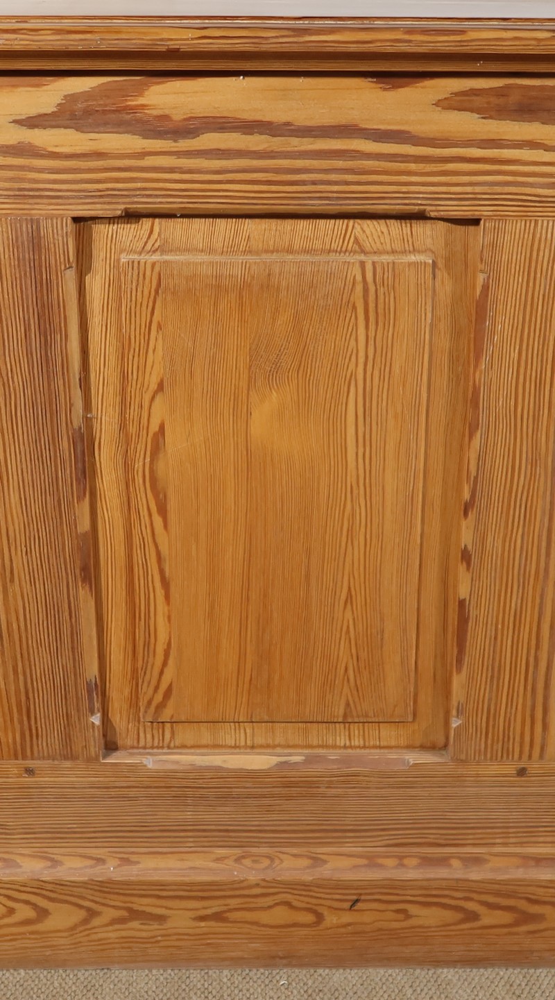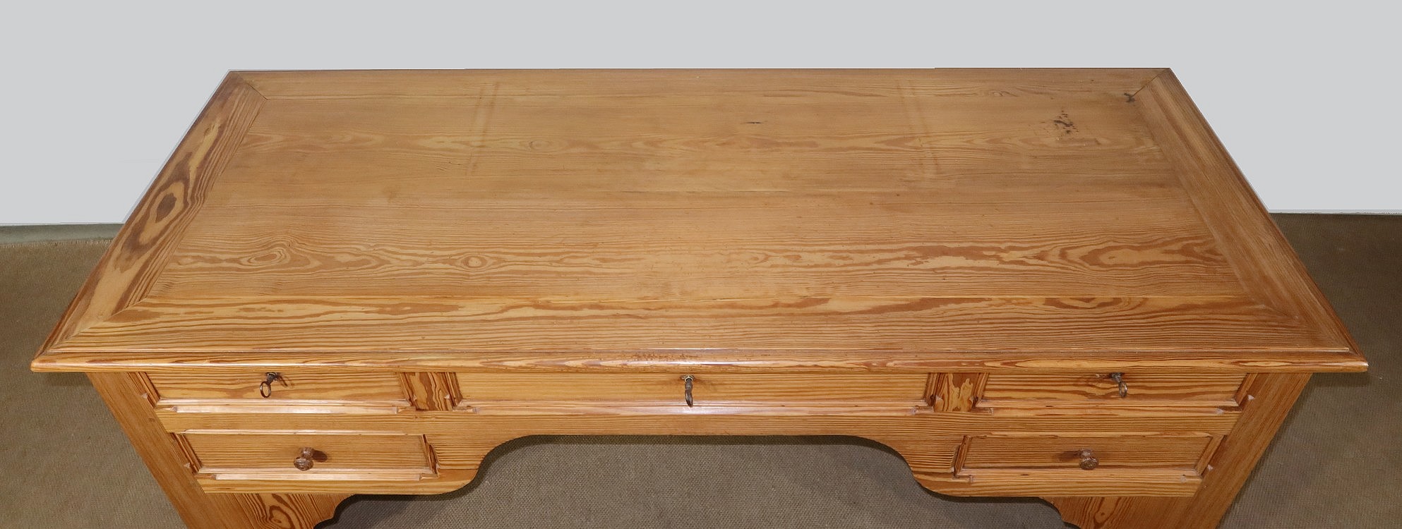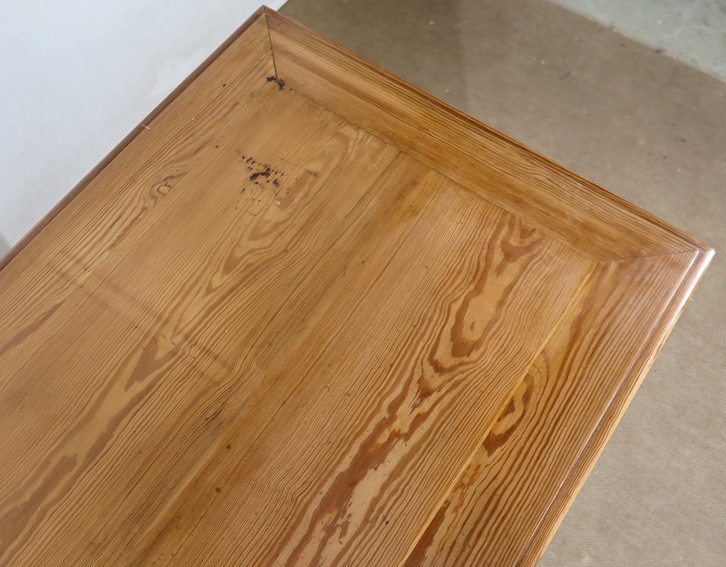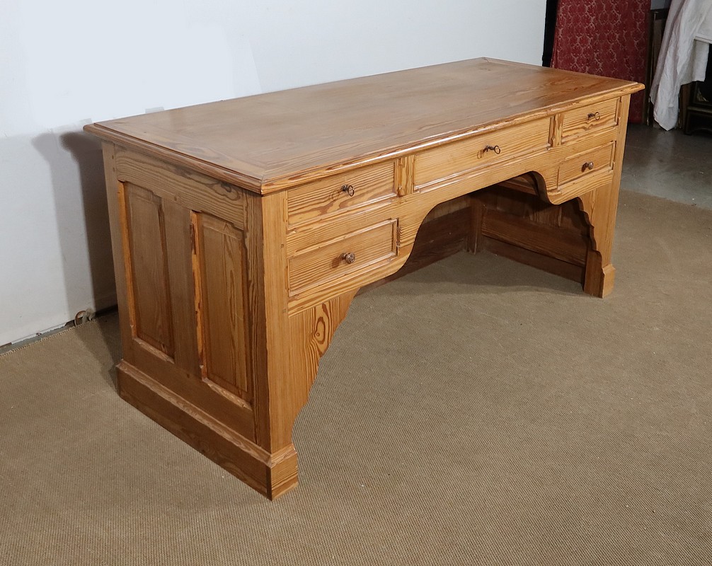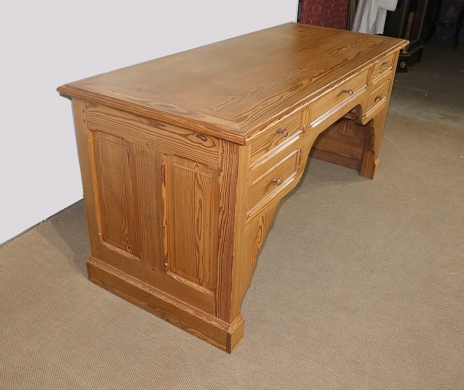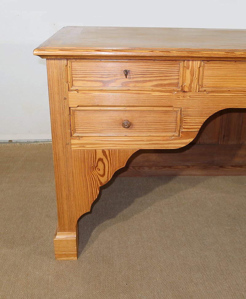 Grand bureau de communauté en pitchpin de qualité pourvu d’un fond panneauté.