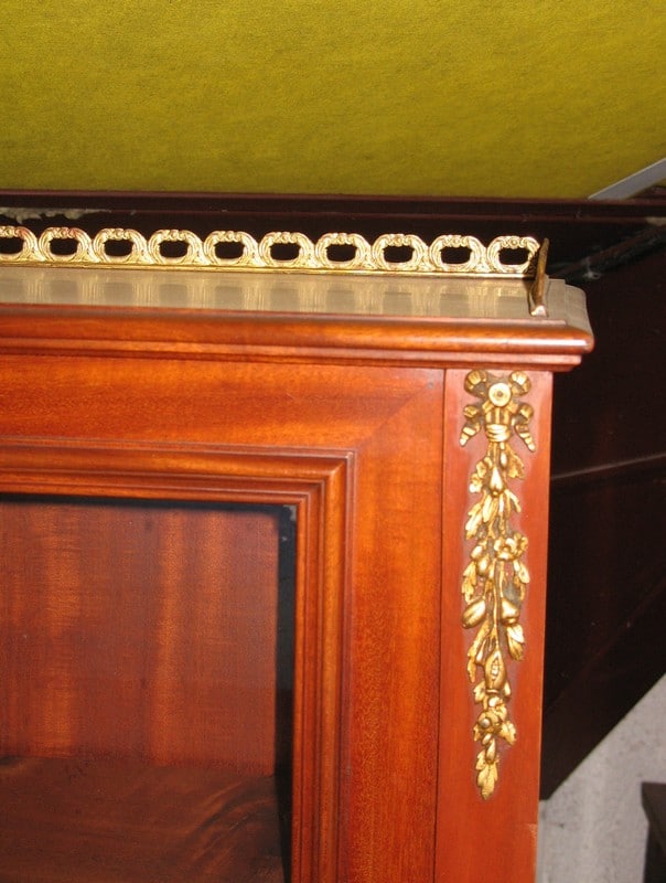 Une galerie de laiton ajourée entoure les 3 côtés du dessus. Époque : 1870.