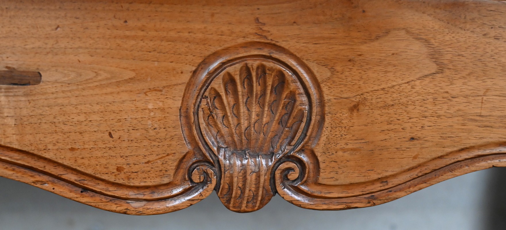 La traverse basse légèrement découpée est ornementée d’une coquille au centre.