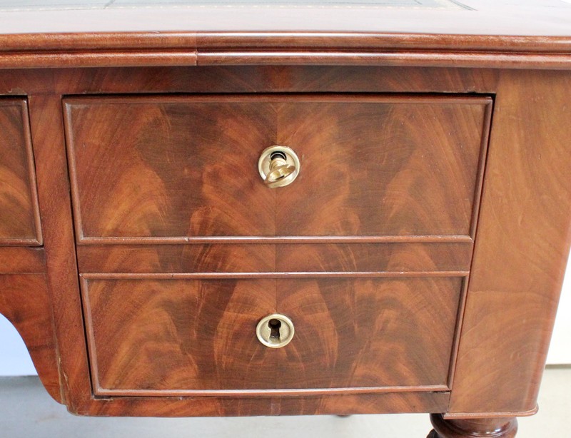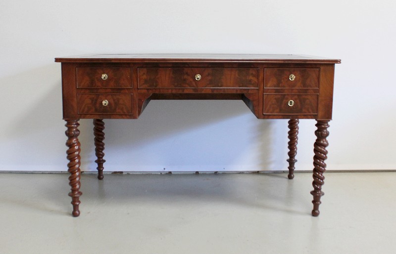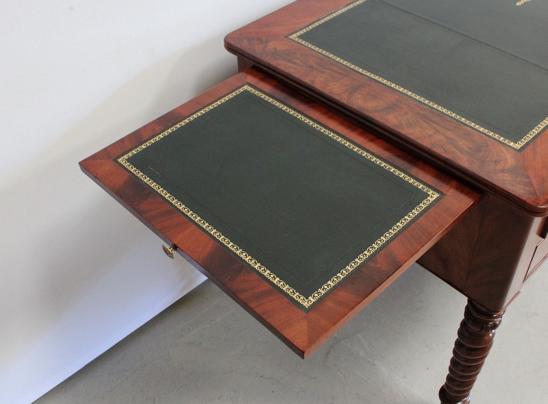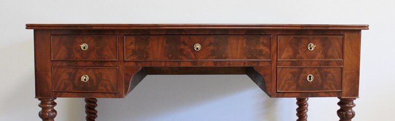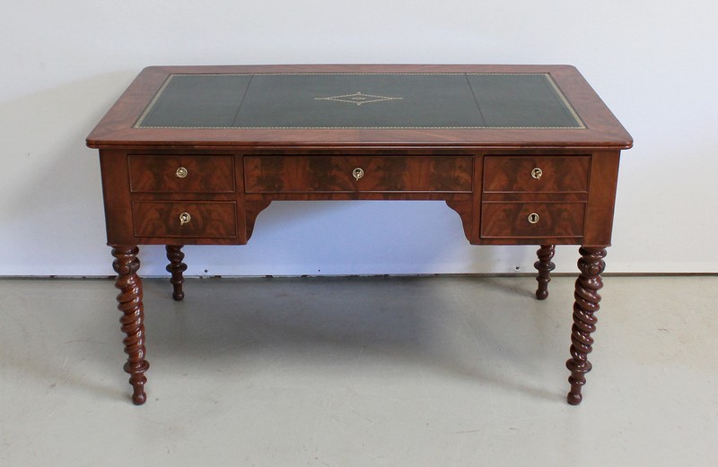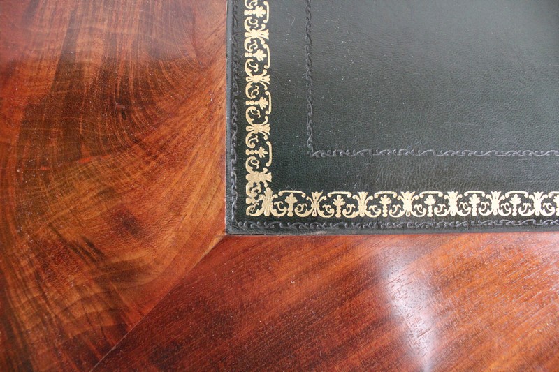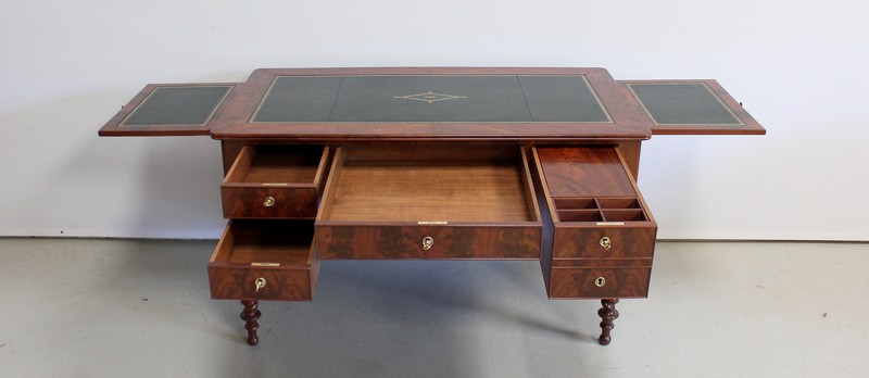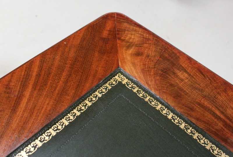 Élégant Bureau Plat de Milieu à Encadrement à Coupes d’onglet, plaqué de Ronce d’Acajou.