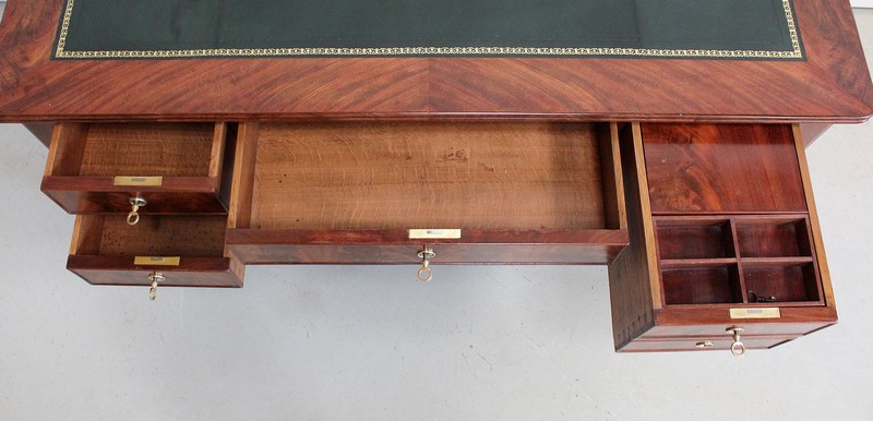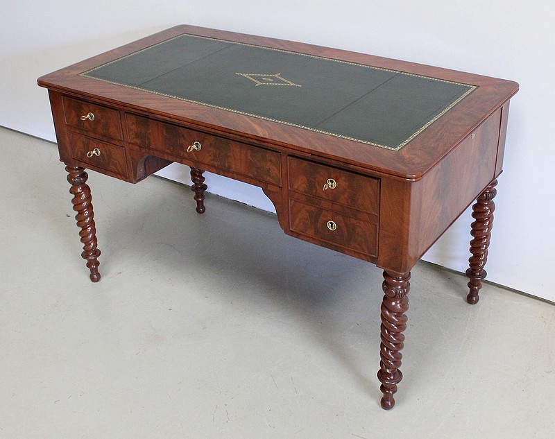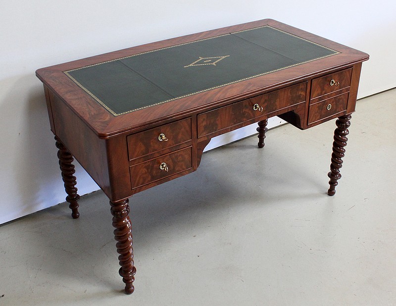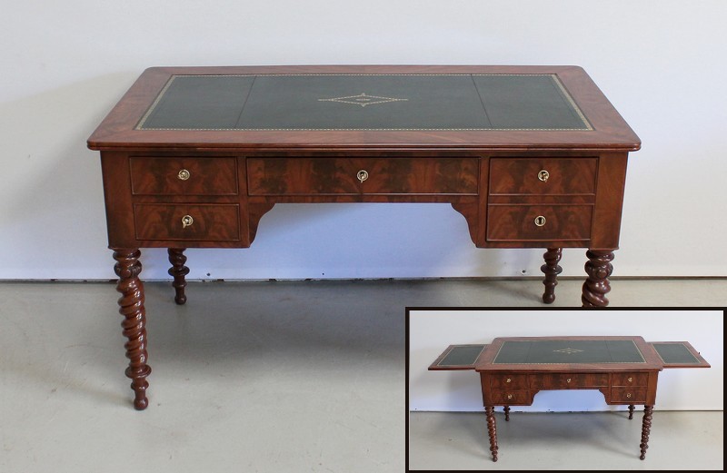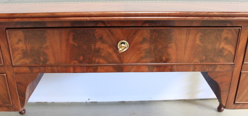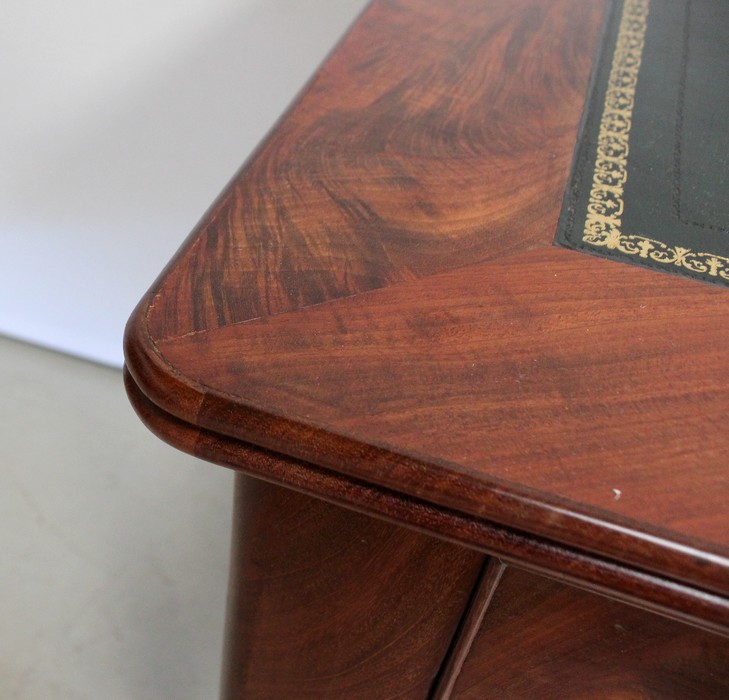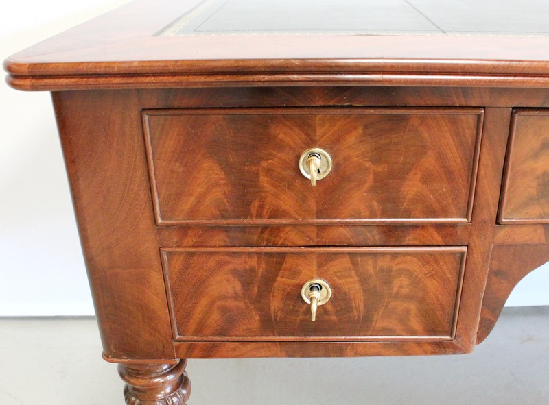 Élégant Bureau Plat de Milieu à Encadrement à Coupes d’onglet, plaqué de Ronce d’Acajou.