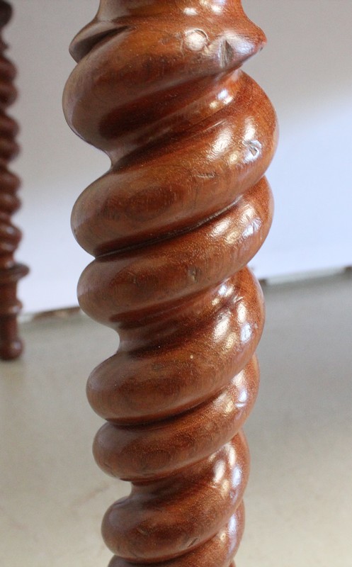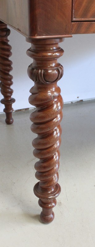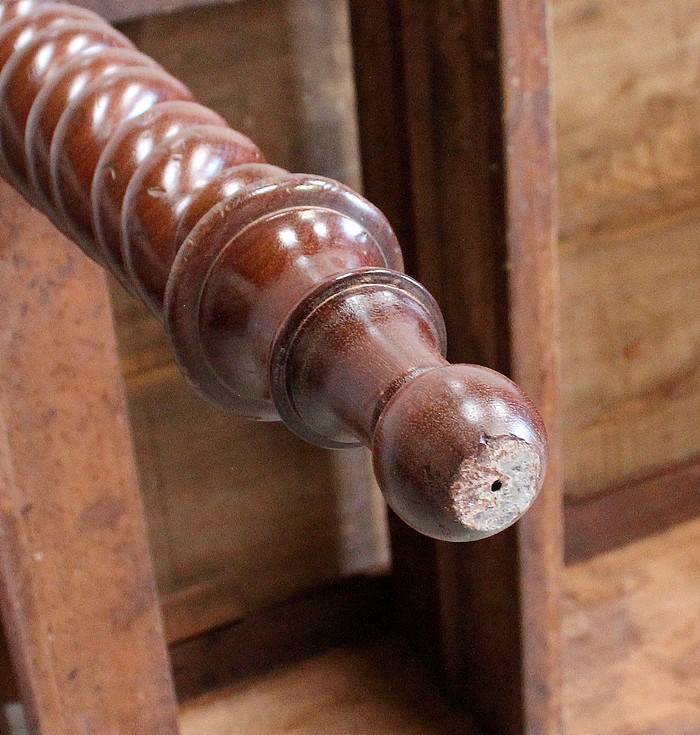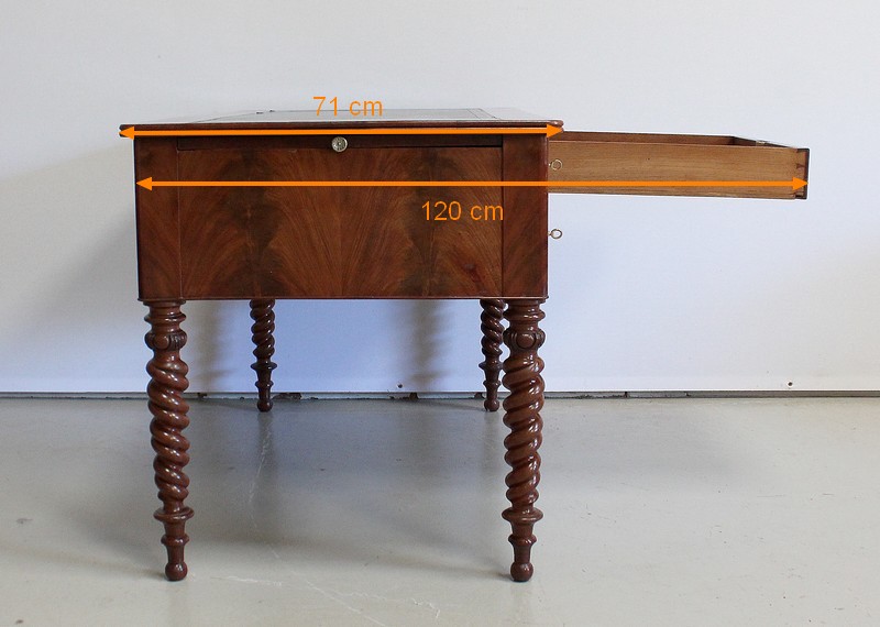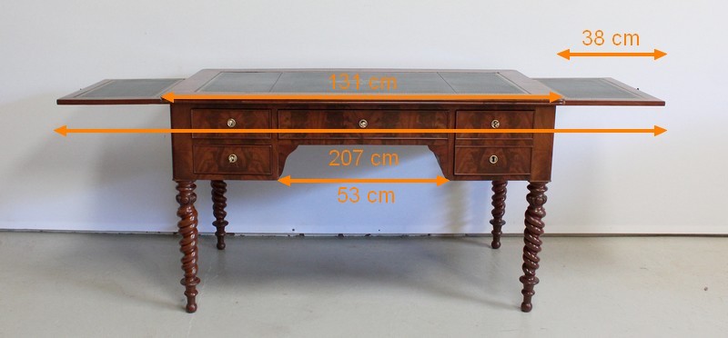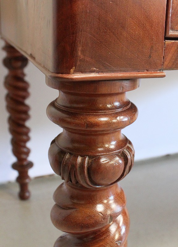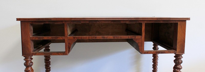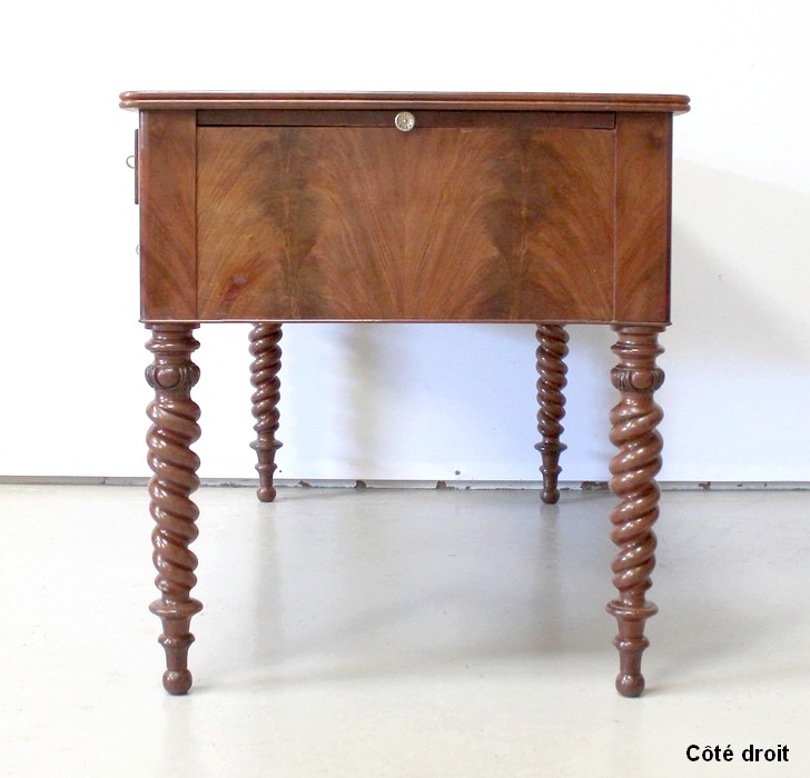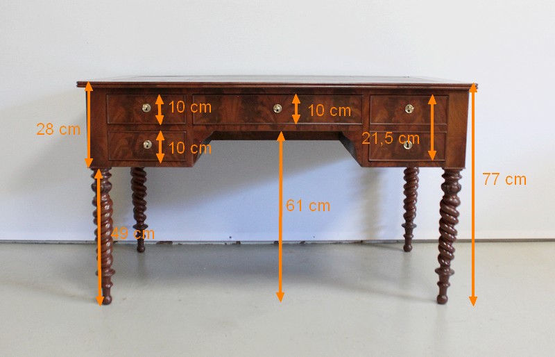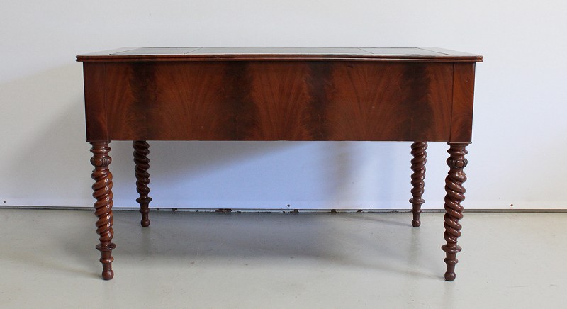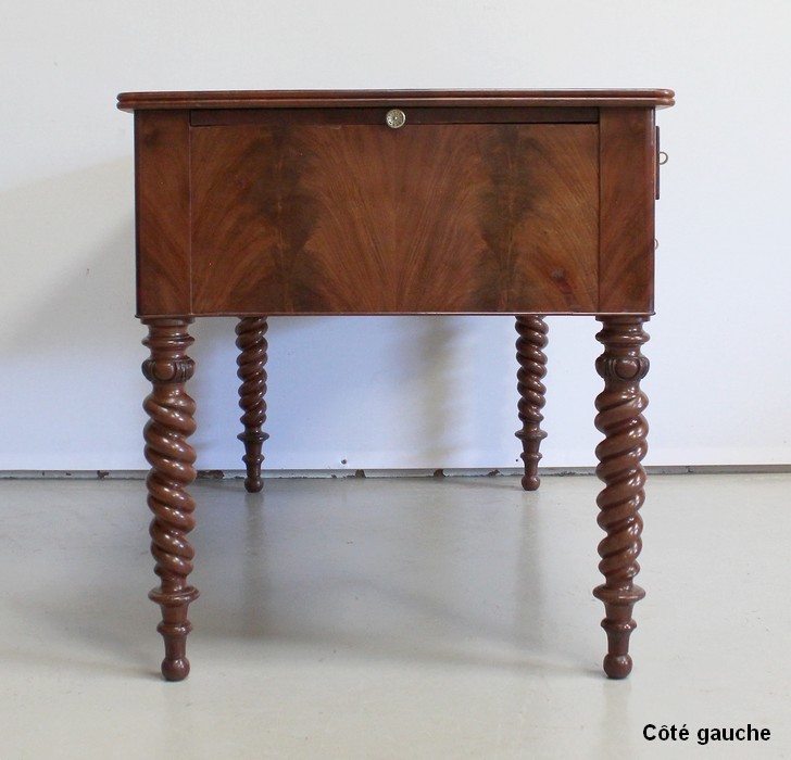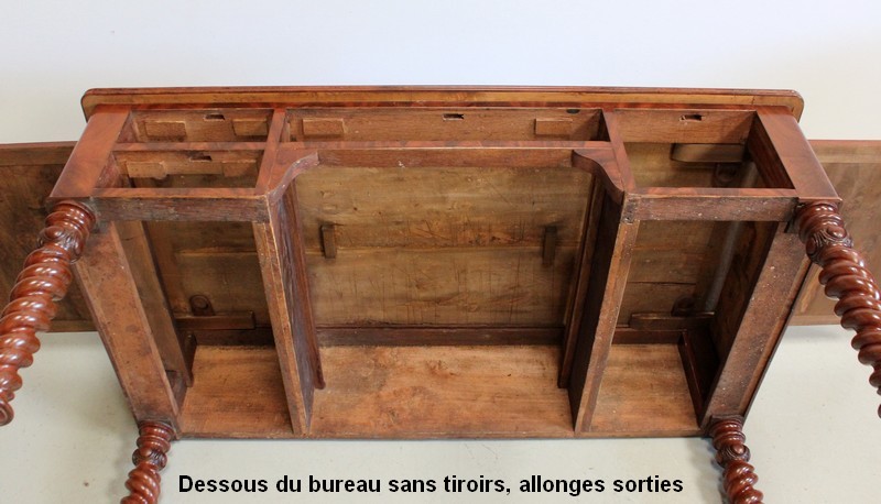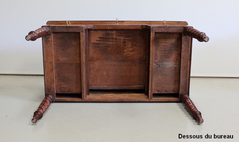 Ce Bureau repose sur quatre Pieds à double Torsades, qui se diminuent en largeur vers le bas.