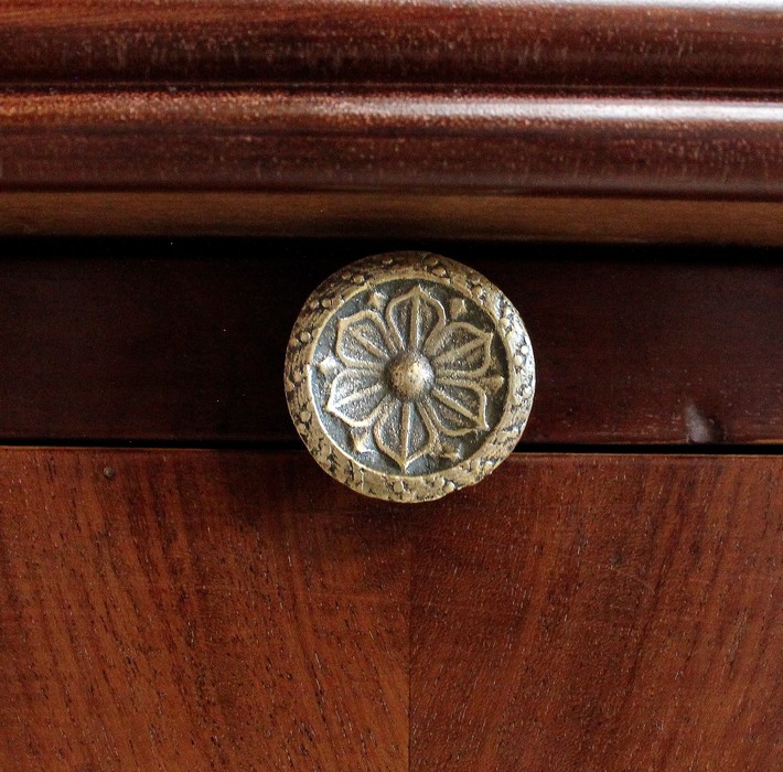 Les Côtés et l’Arrière sont également en Ronce d’Acajou, en faisant ainsi un Parfait Meuble de Milieu.