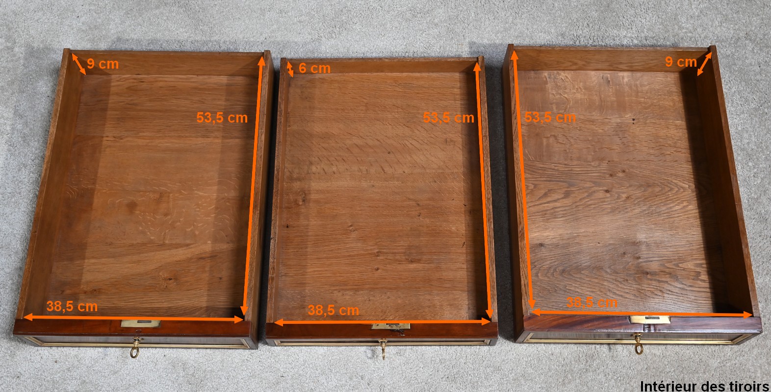Ces tiroirs sont équipés de serrures d’origine fonctionnelles avec clés et entrées en applique.