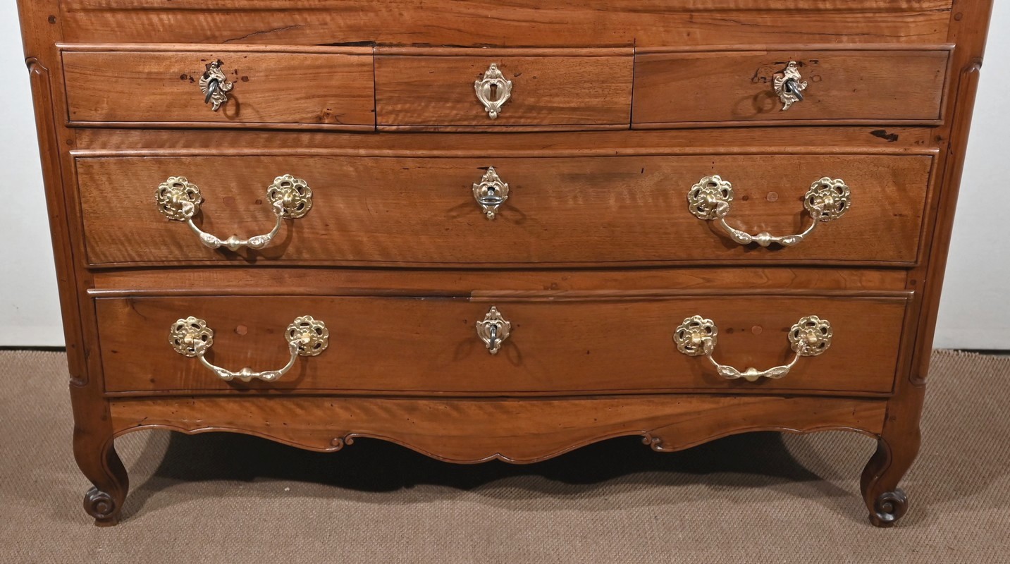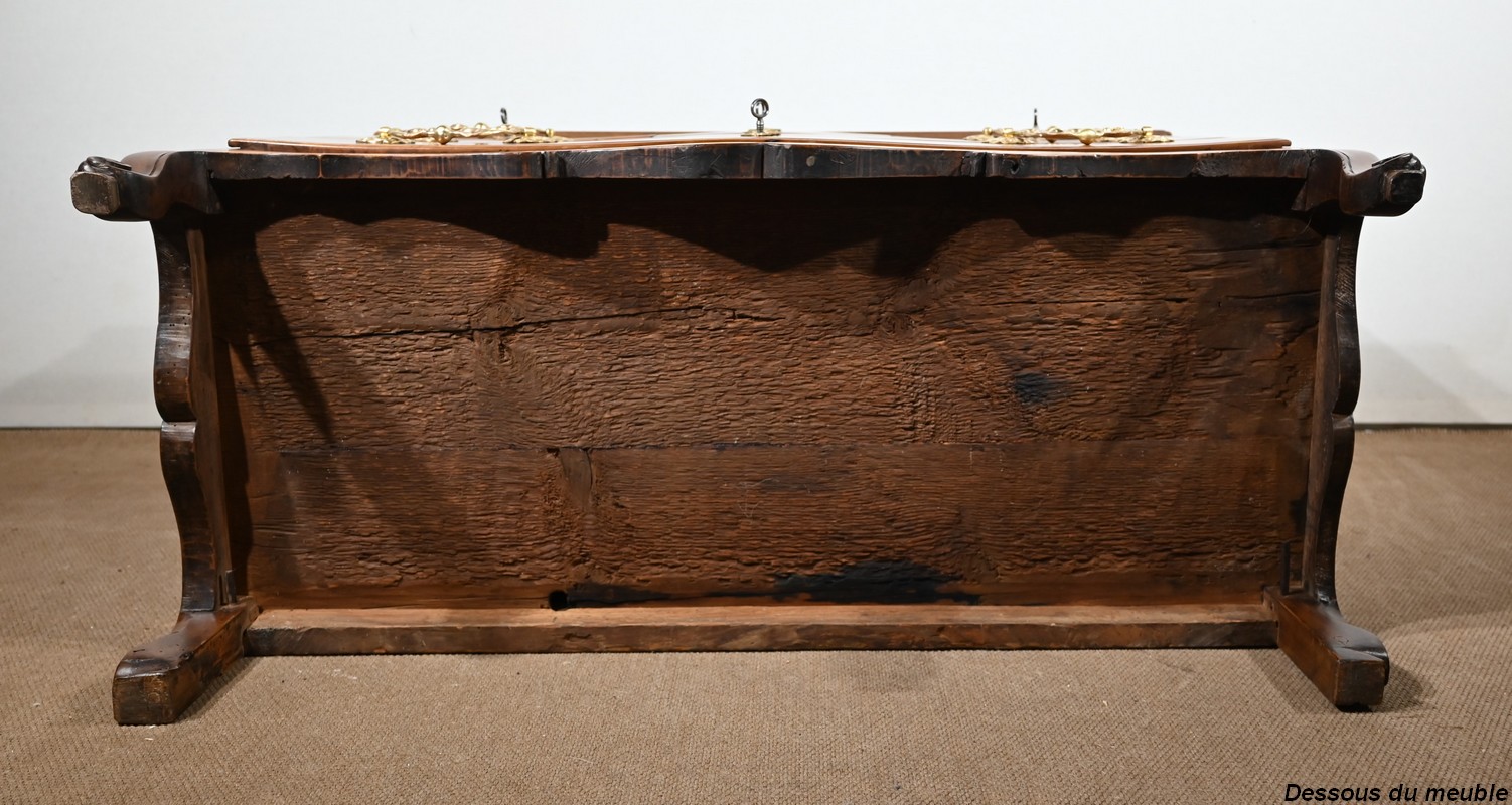 Sa façade mouvementée et ses côtés sont en noyer.