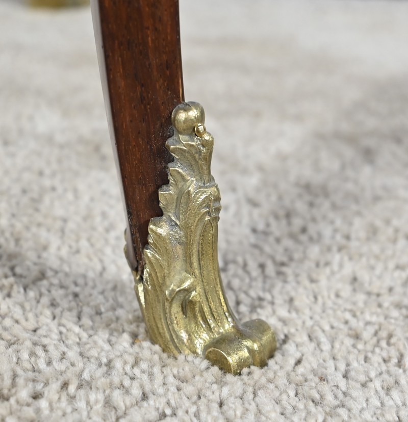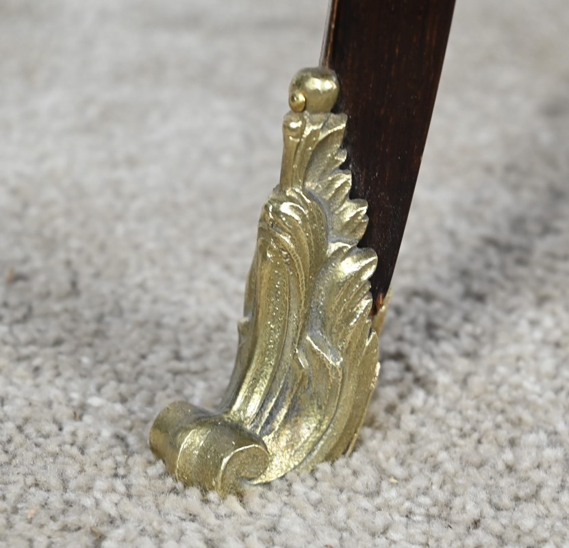 Le dessous de chaque traverse est à découpe et se profile sur un pied coup de fouet habillé d’une longue chute se terminant par un sabot bronze.