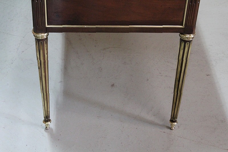 Les montants cylindriques sont à cannelures rudentées et les pieds fuselés sont à cannelures laitonnées terminés par des pieds garnis de sabots boules.