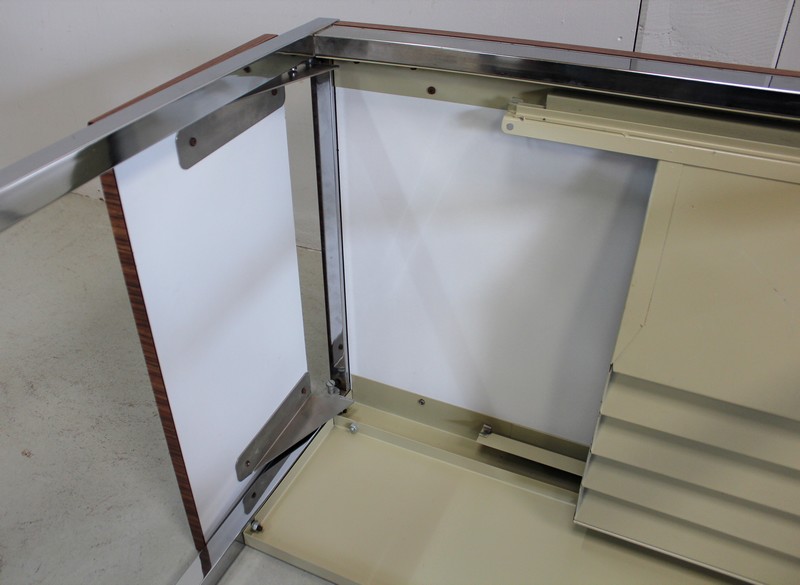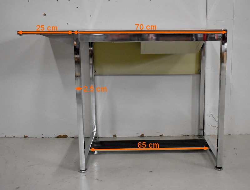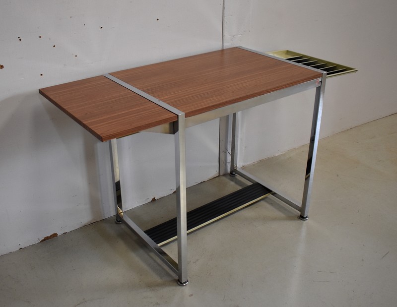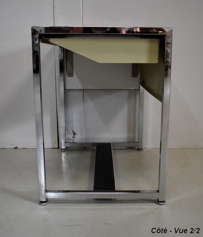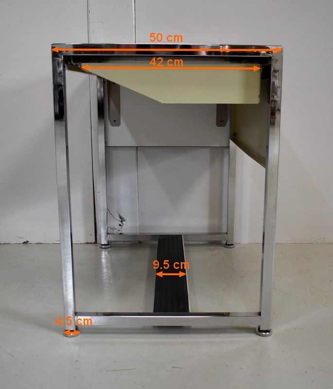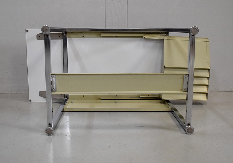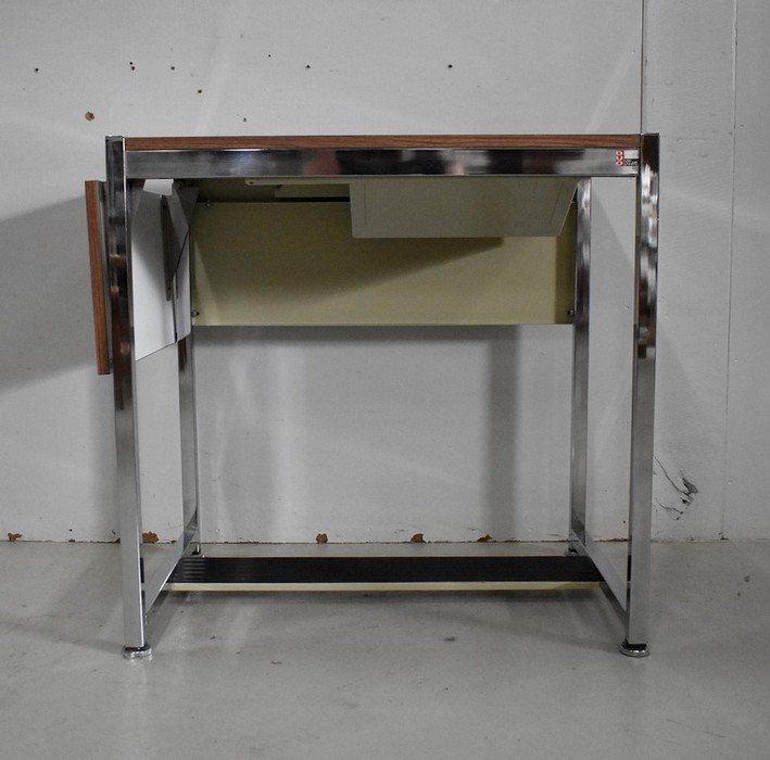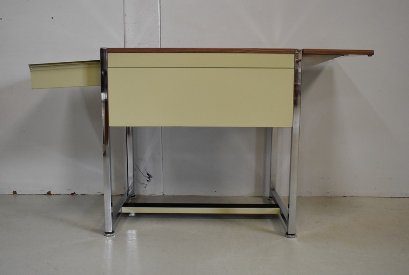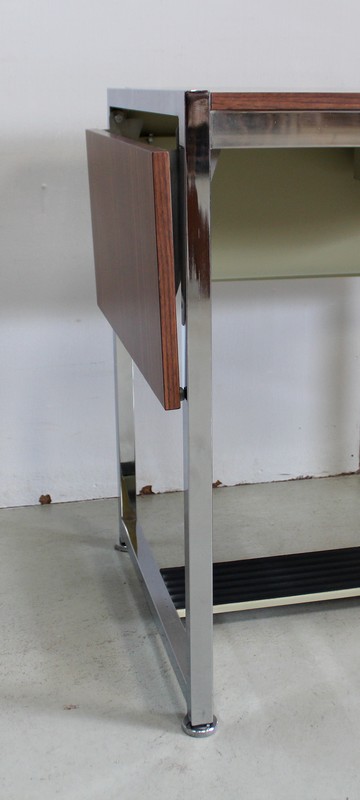 Petit Bureau à Volet, en Métal Chromé et Formica – 1970