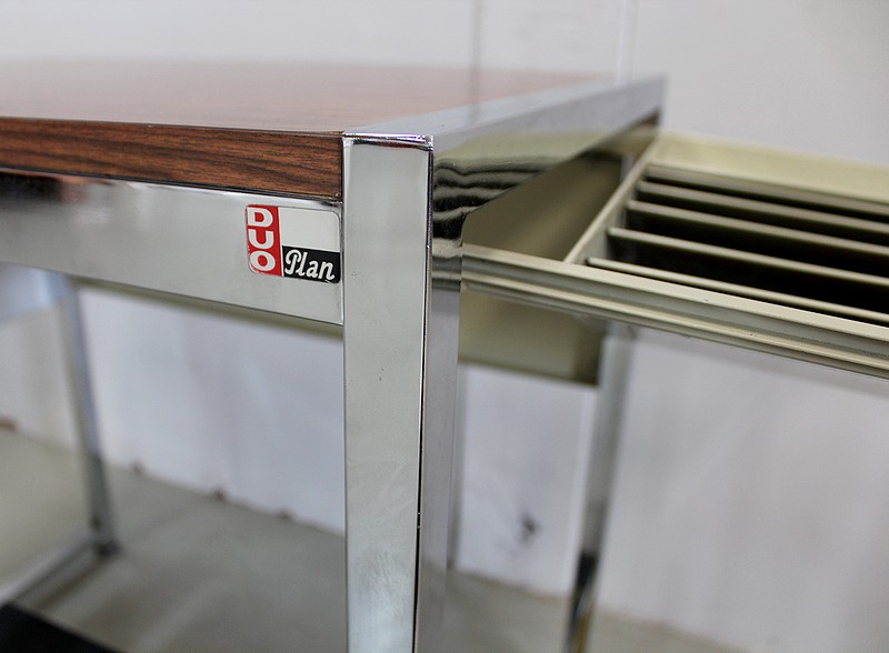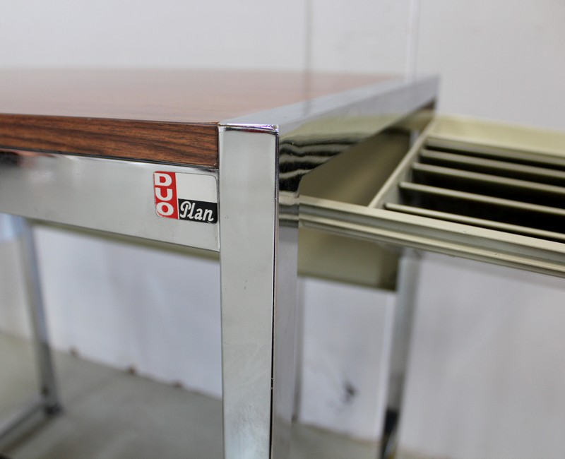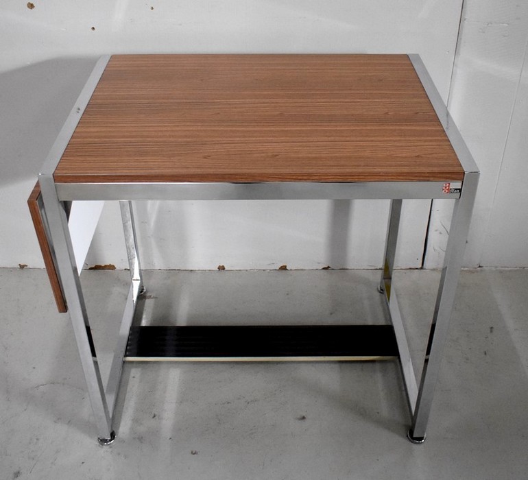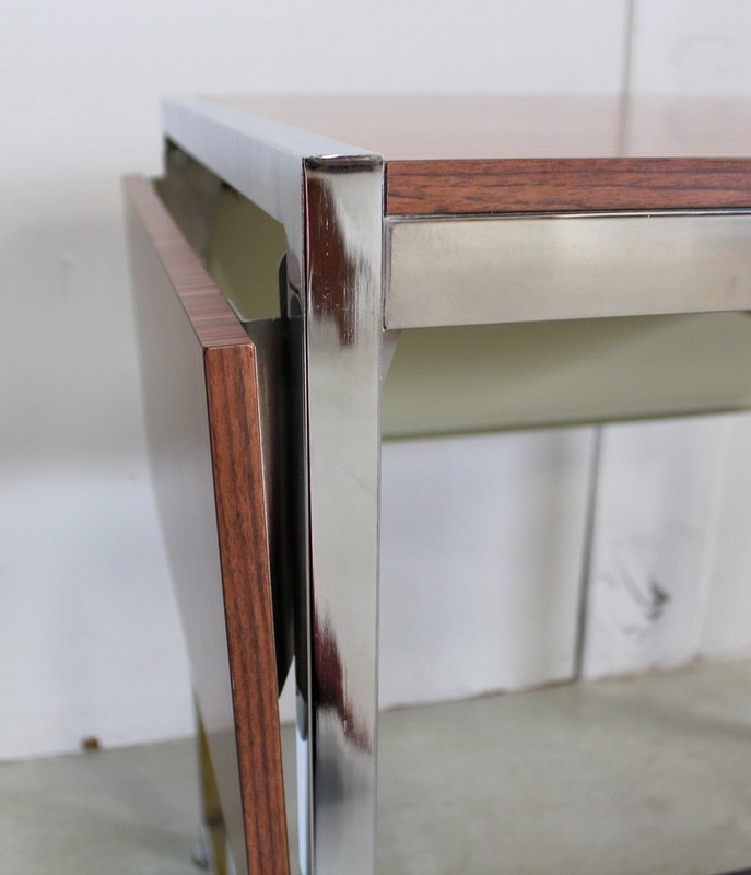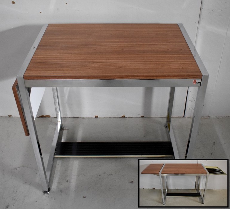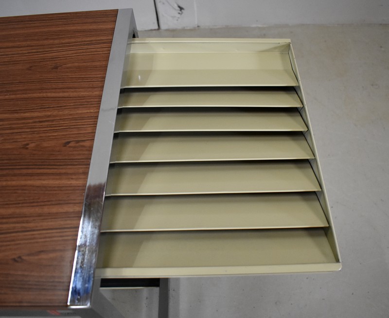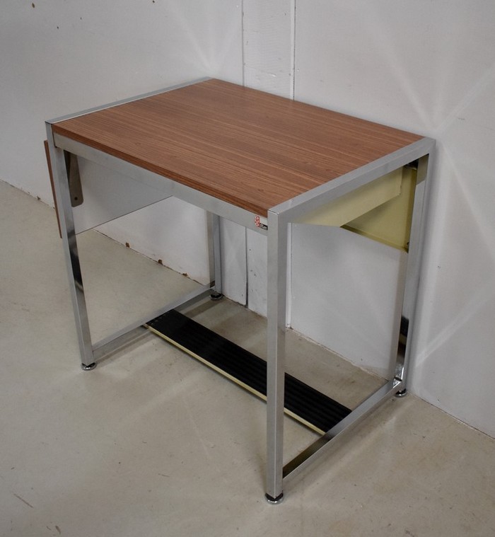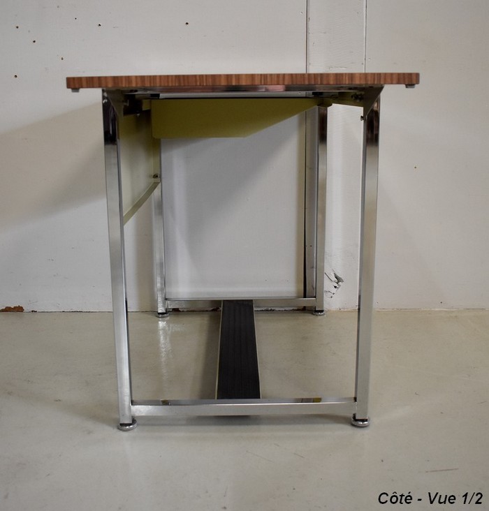 Petit Bureau à Volet, en Métal Chromé et Formica – 1970