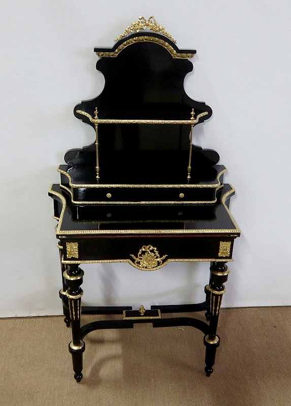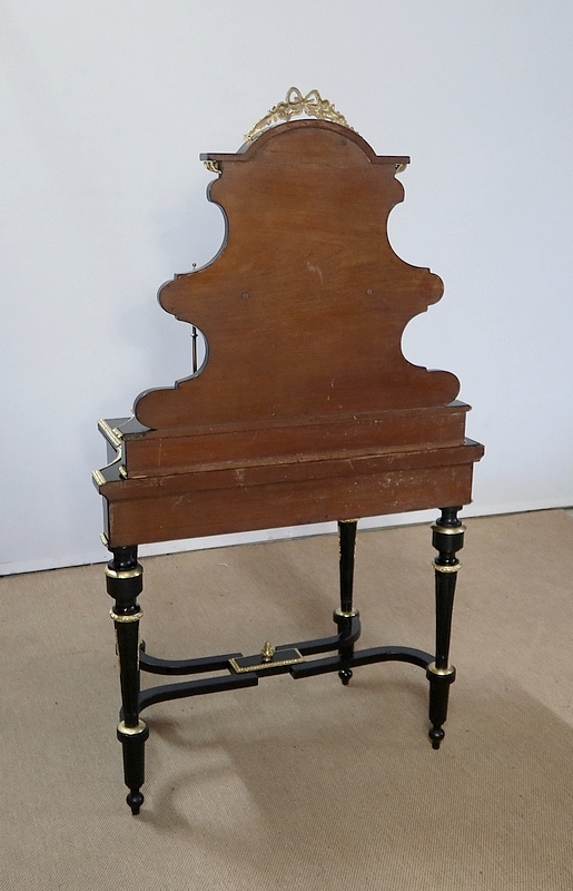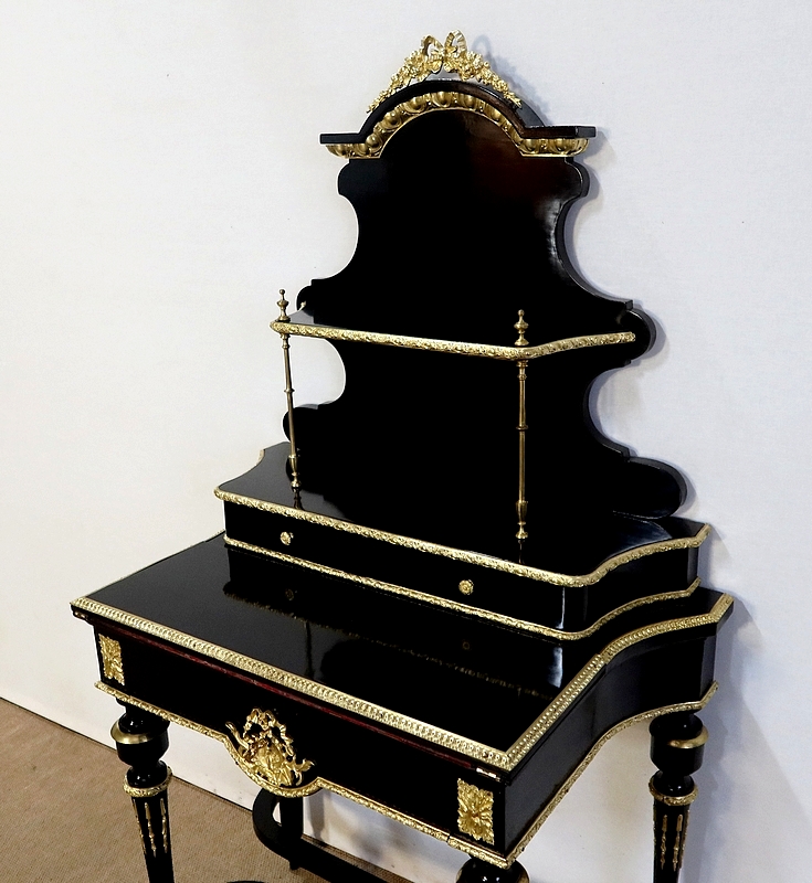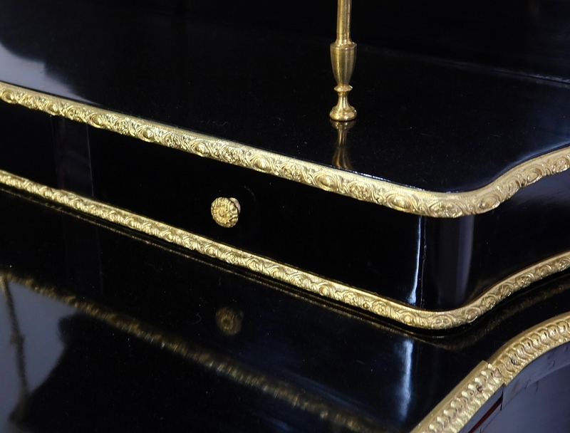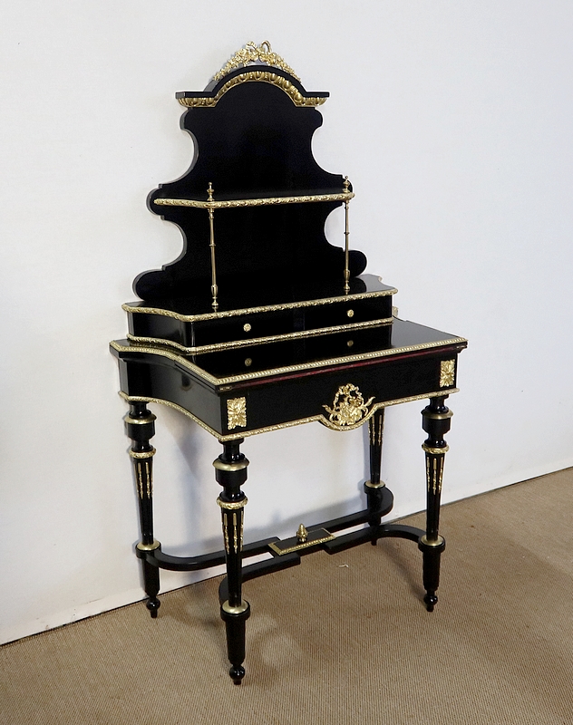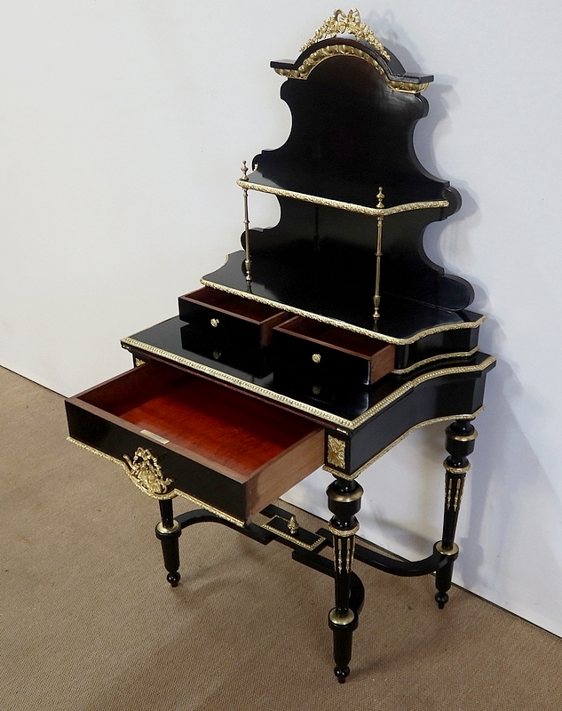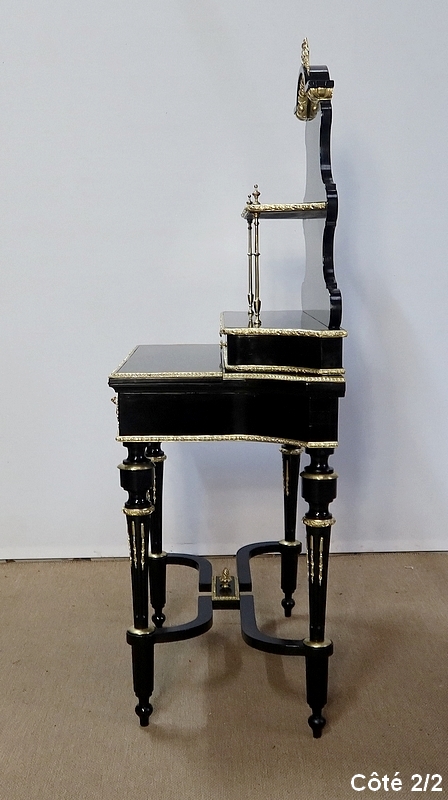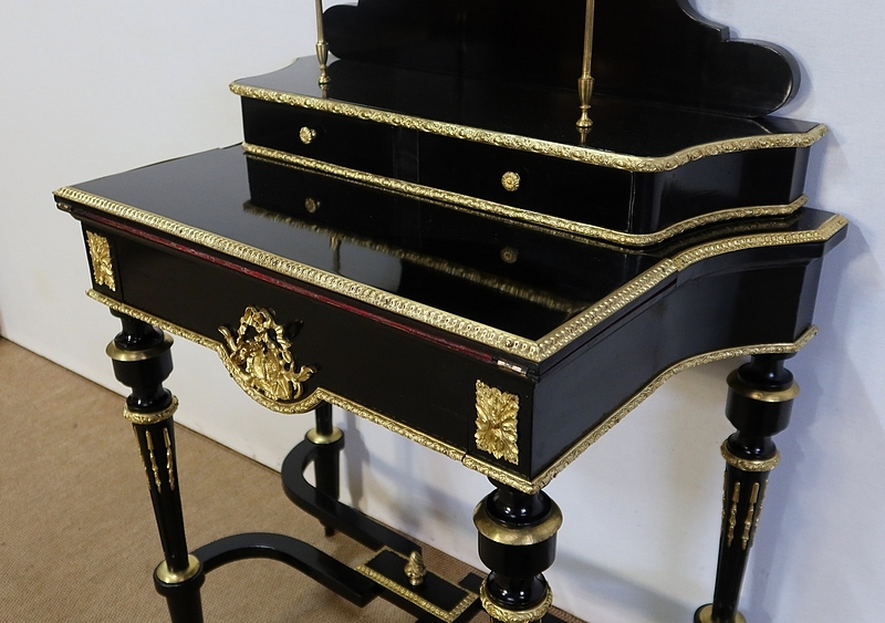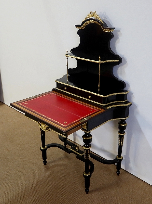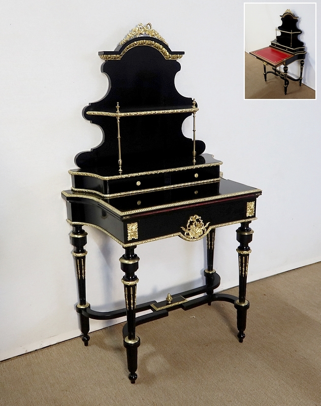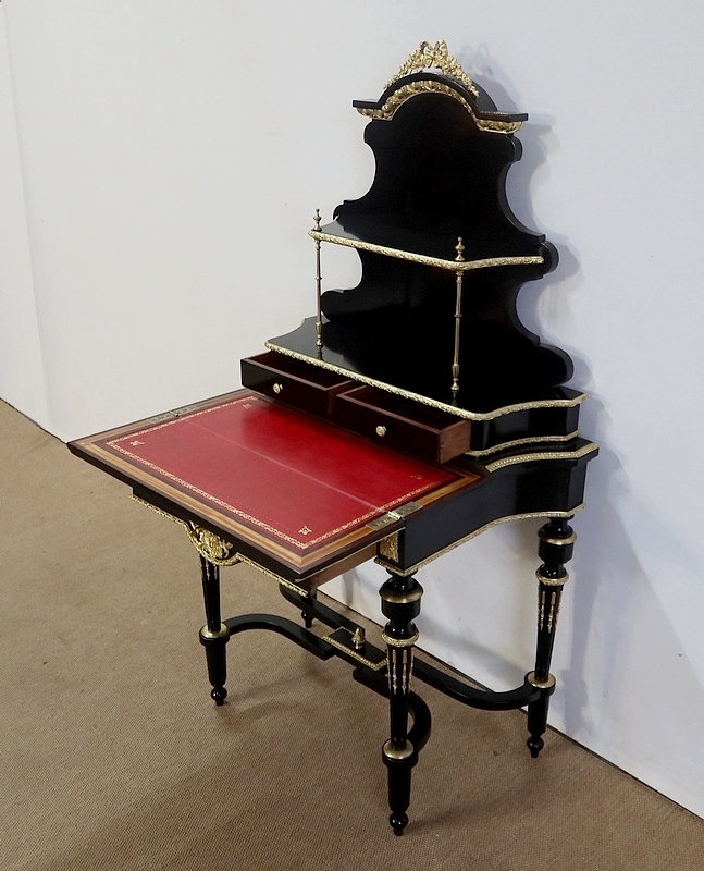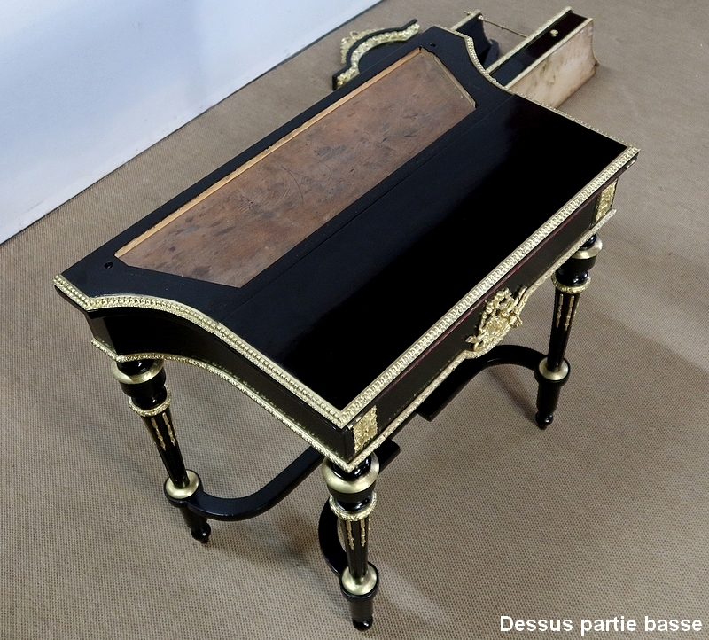 Bureau de Dame Napoléon III en poirier noirci, vernis tampon, ornementé de bronze et constitué de deux éléments.