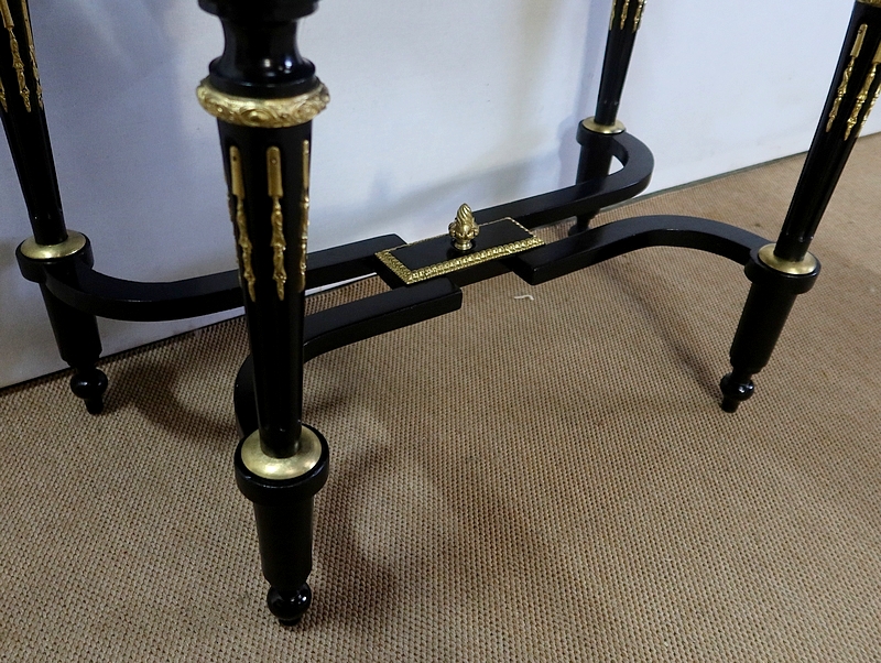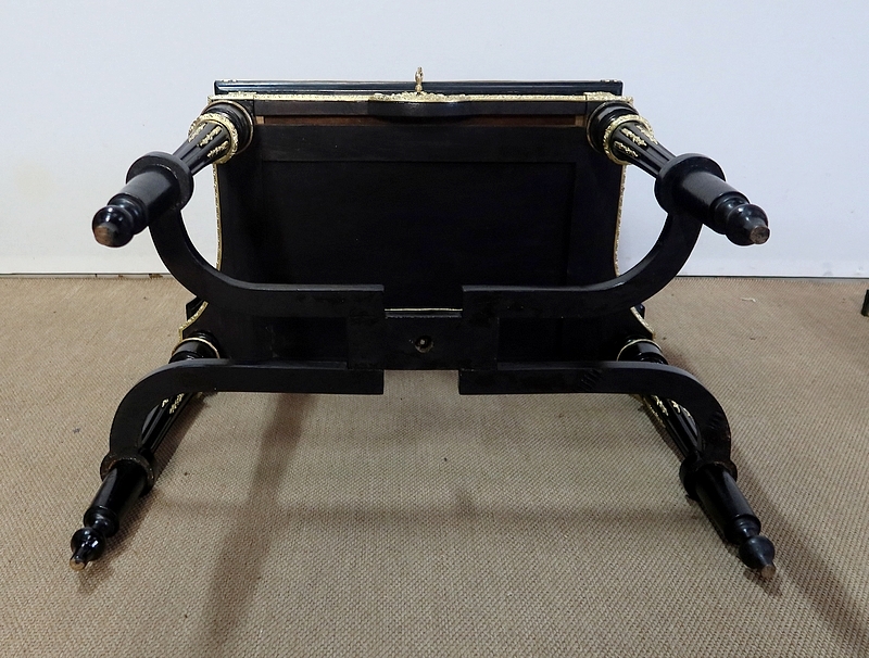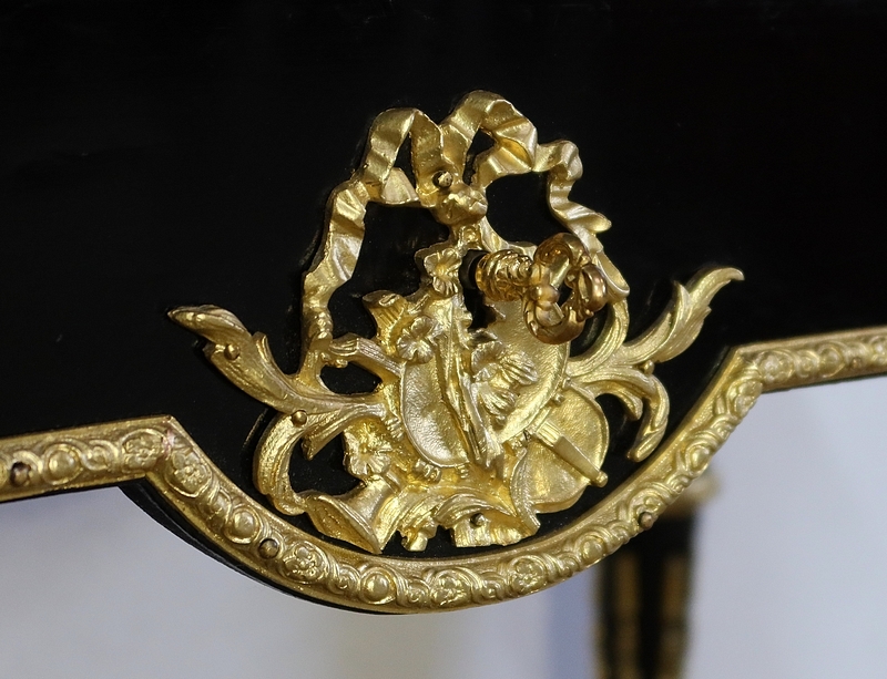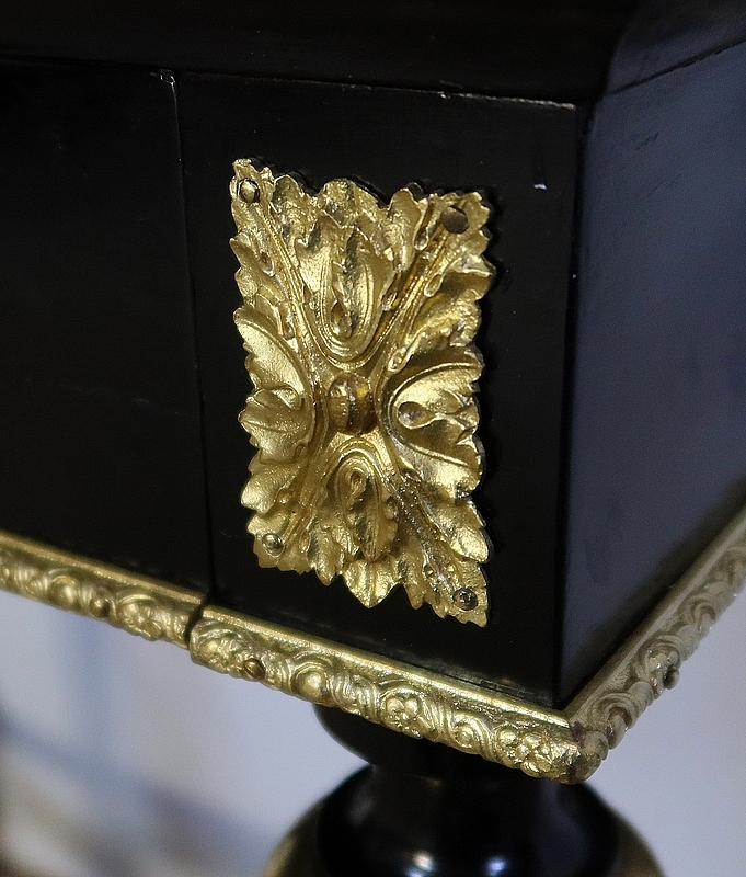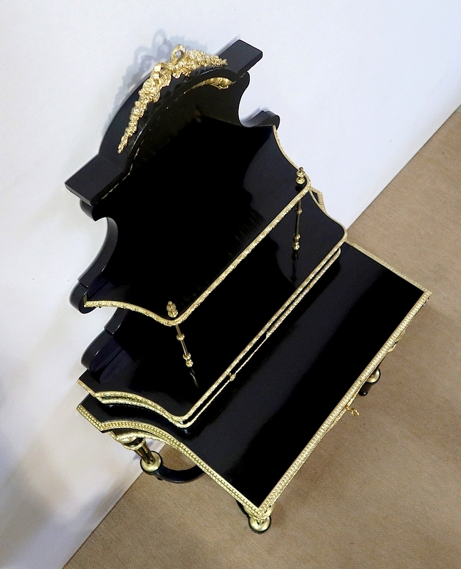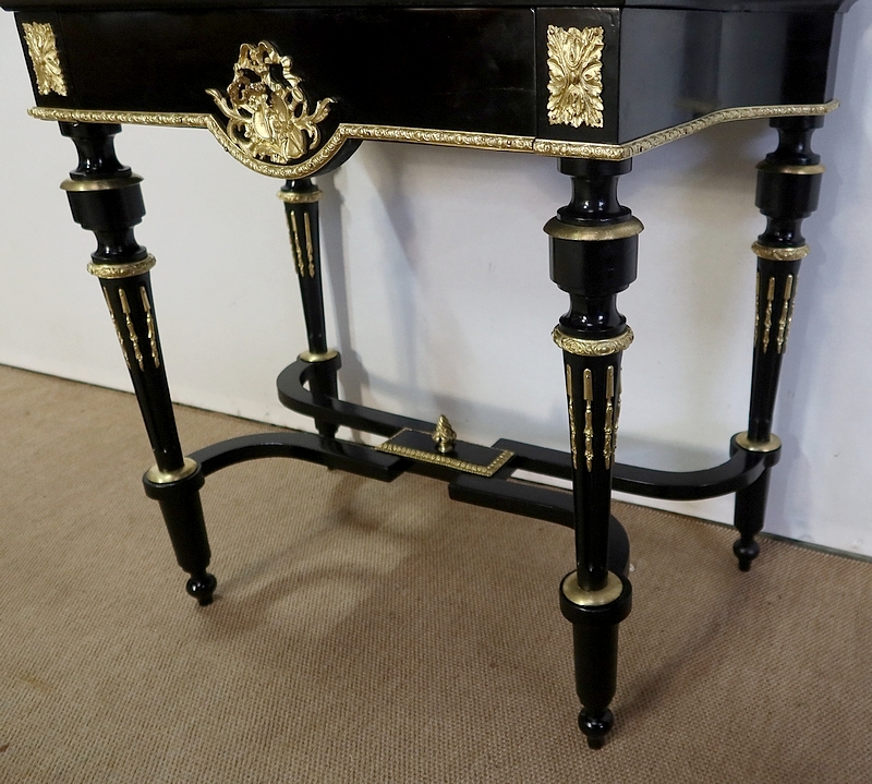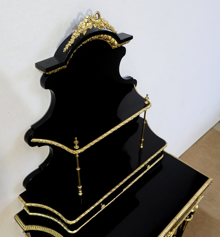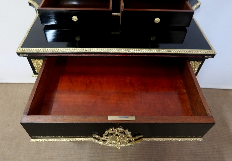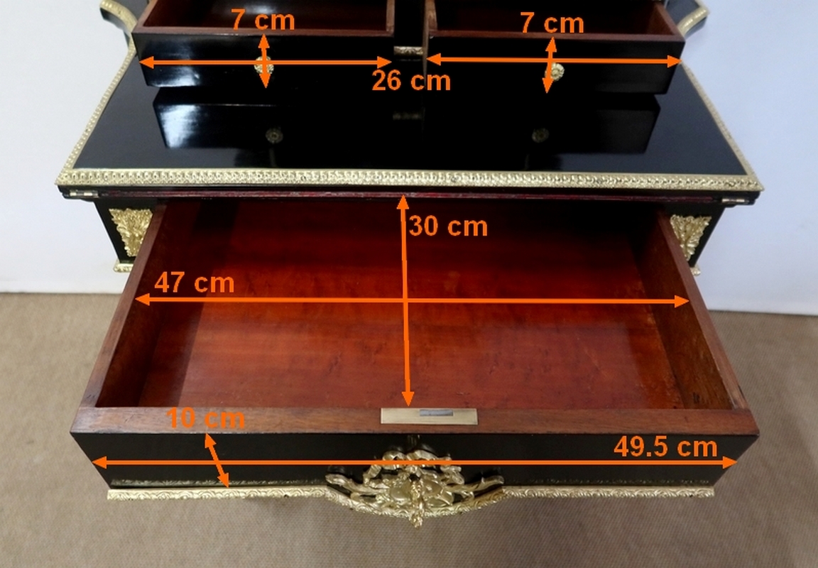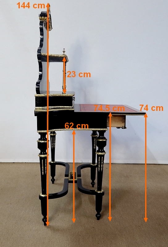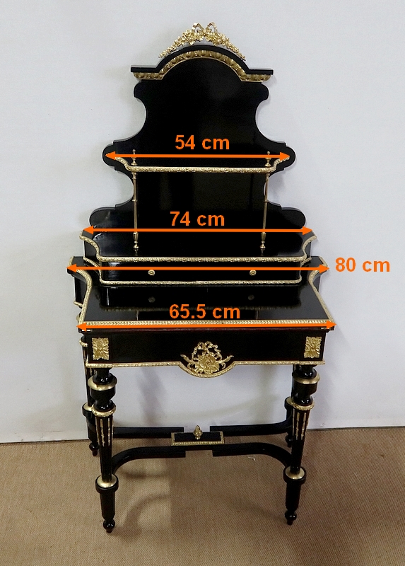 Bureau de Dame Napoléon III en poirier noirci, vernis tampon, ornementé de bronze et constitué de deux éléments.