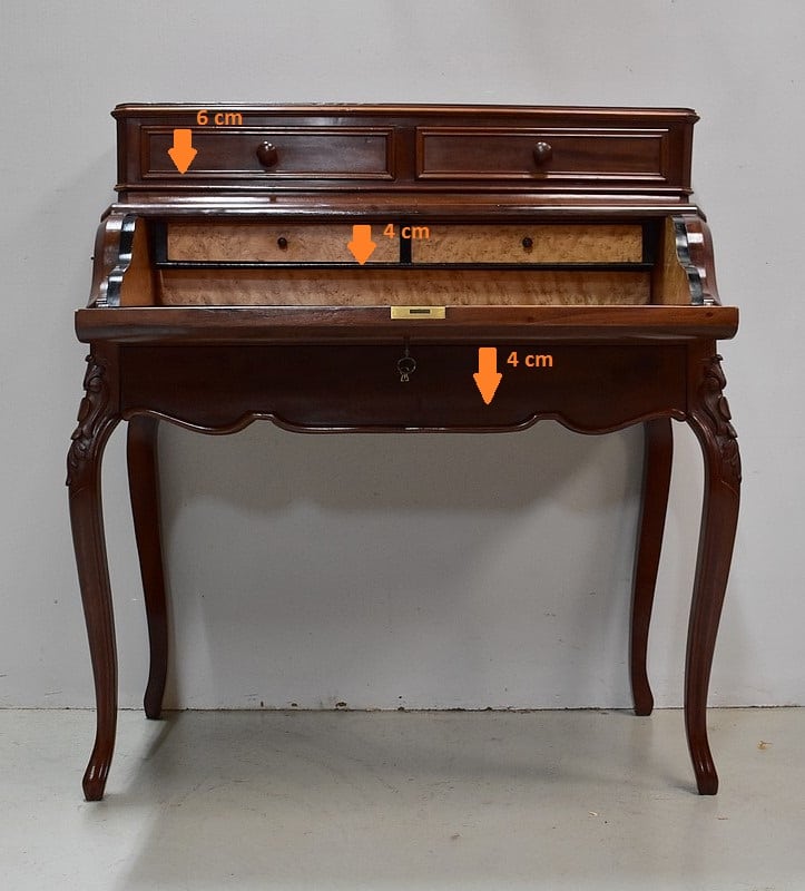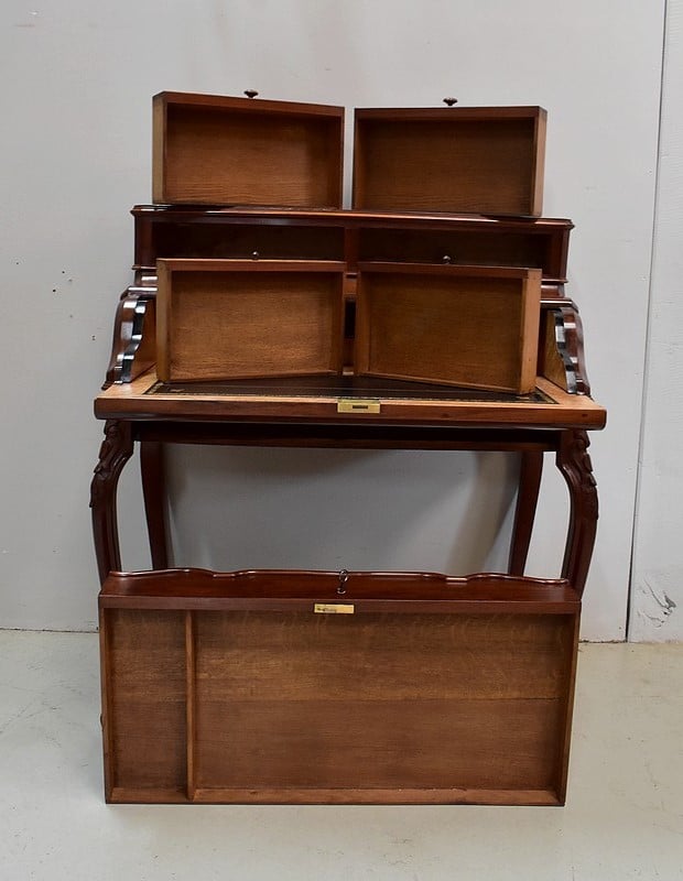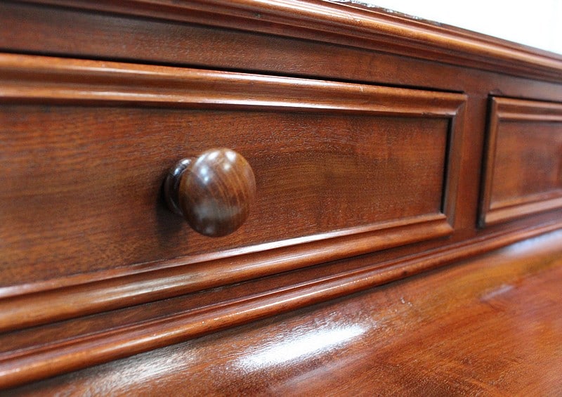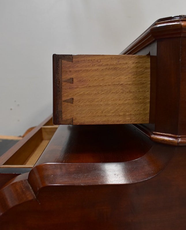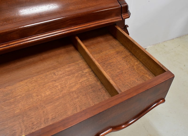 L’intérieur des tiroirs est en Chêne, l’arrière du meuble en Acajou.