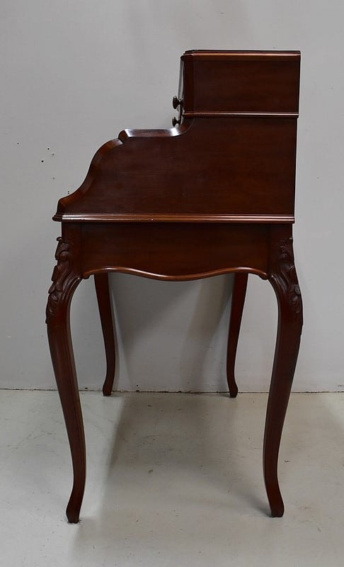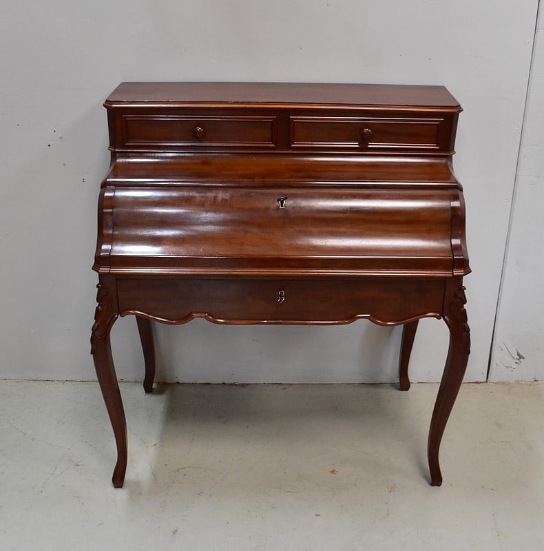 Petit Bureau en Acajou de Cuba massif et plaqué, ouvrant en partie supérieure par deux tiroirs à boutons de tirage et contours moulurés.