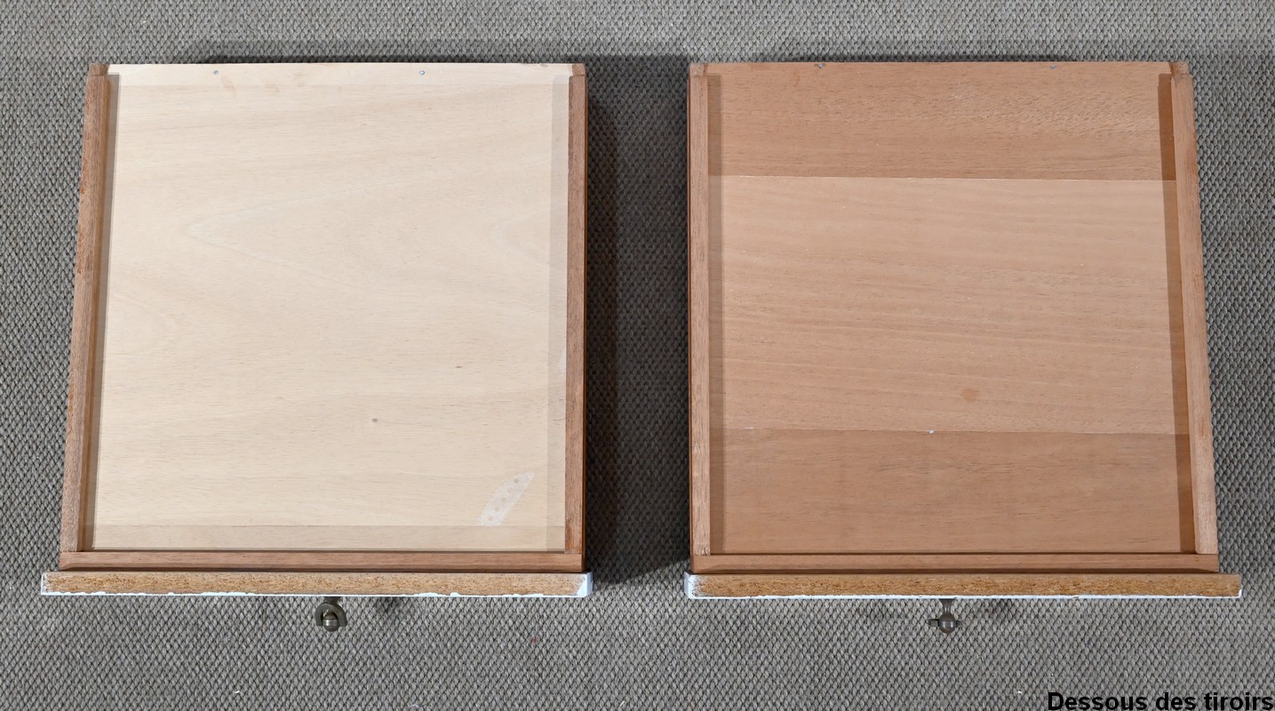 Ces tiroirs, ainsi que la traverse arrière, sont en laminé de couleur blanche.