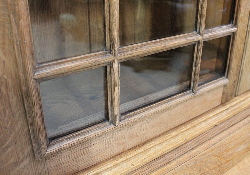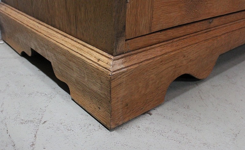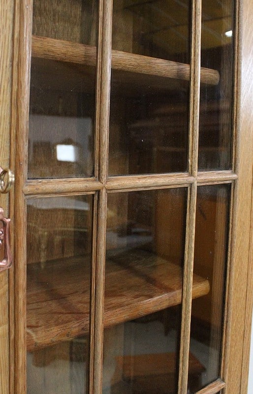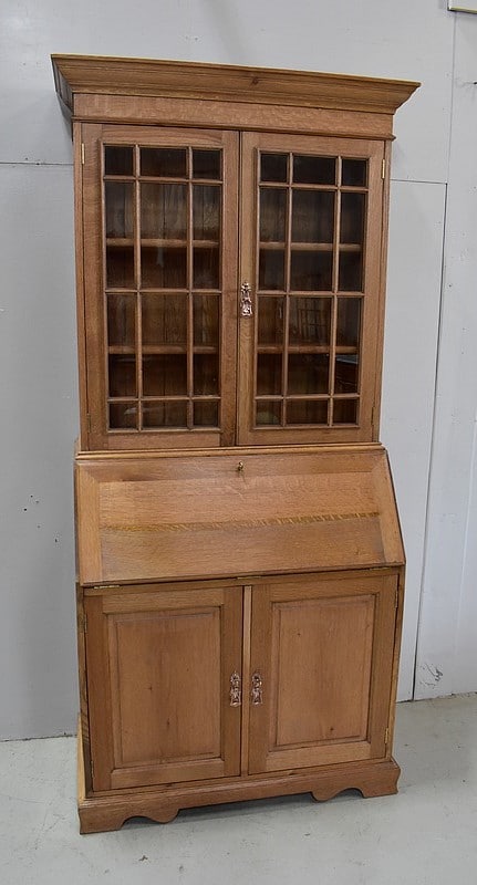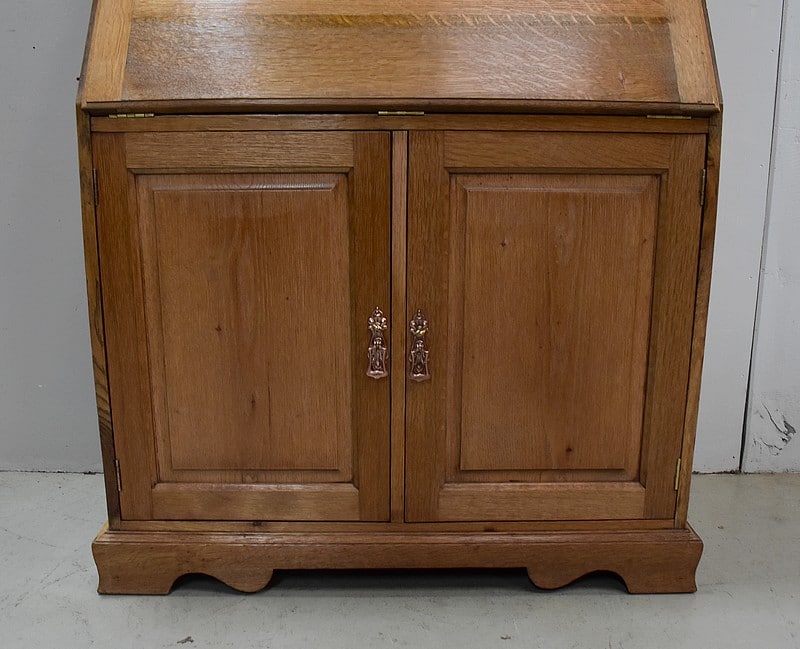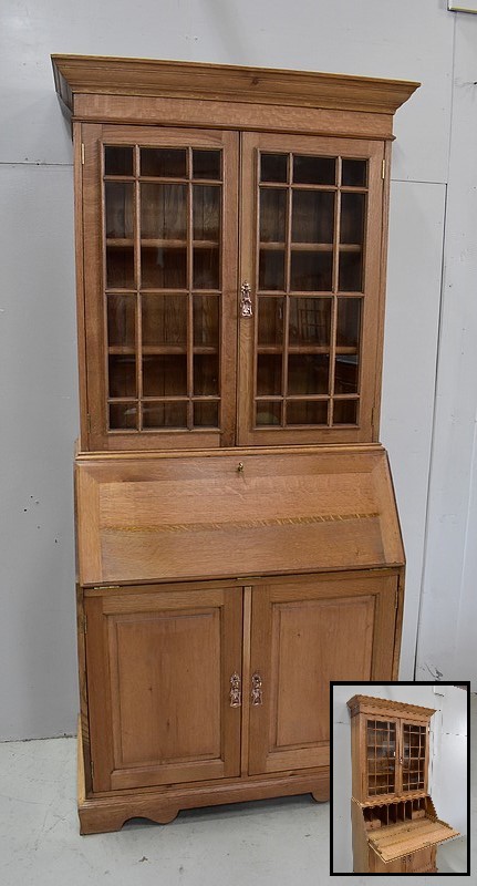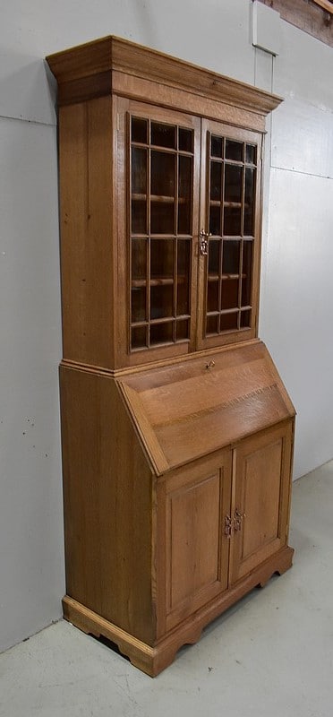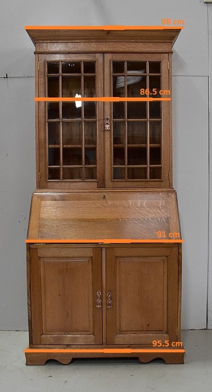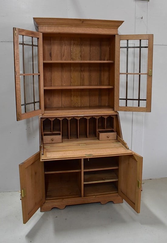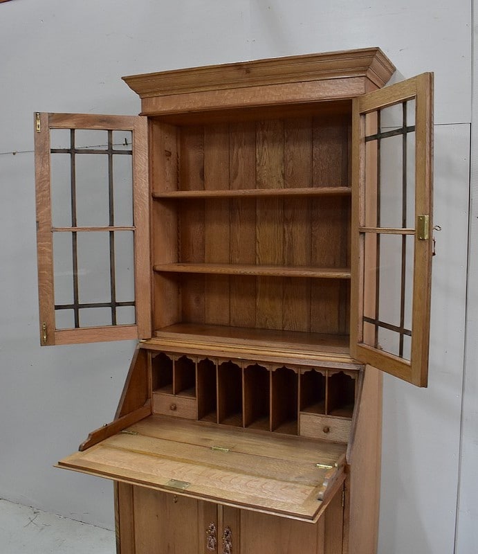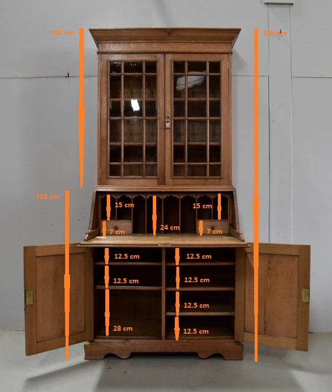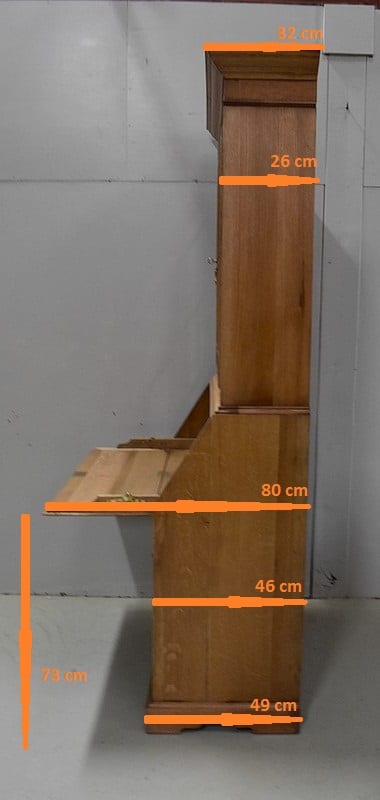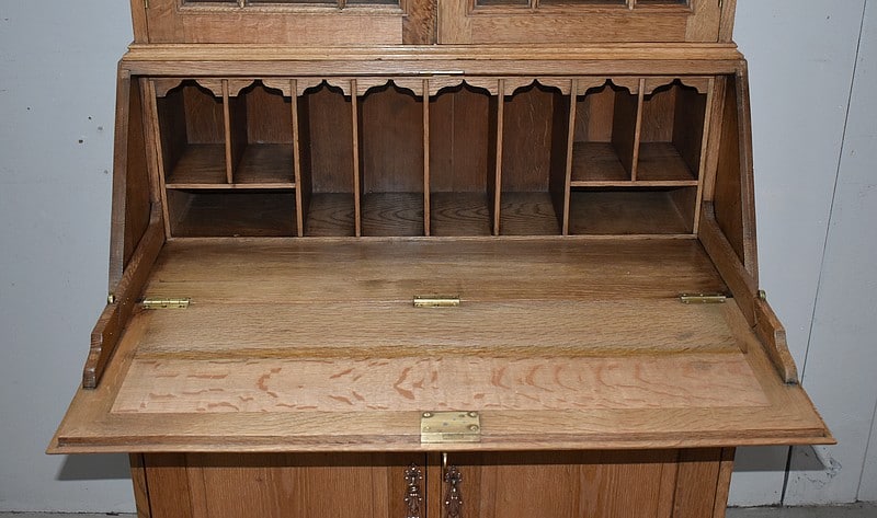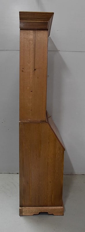 Meuble Anglais formant Vitrine / Scriban / Buffet, en Chêne Blond massif, que l’on choisira de décrire en trois étapes.