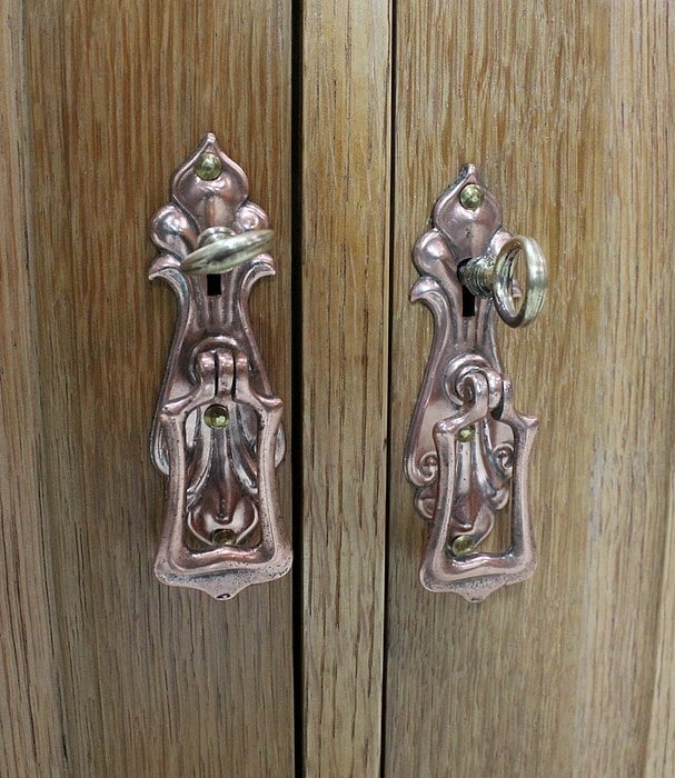 Chacun de ces trois éléments se verrouille et est pourvu de sa clé. On appréciera particulièrement les jolies entrées de serrure en Cuivre Rouge dont bénéficient les portes.